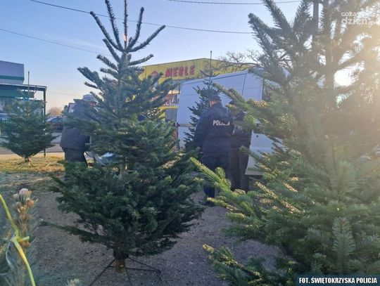 Funkcjonariusze sprawdzają również dokumenty potwierdzające legalność pochodzenia sprzedawanych choinek. Nielegalna wycinka drzewek z lasów wiąże się z poważnymi konsekwencjami prawnymi dla osób odpowiedzialnych.