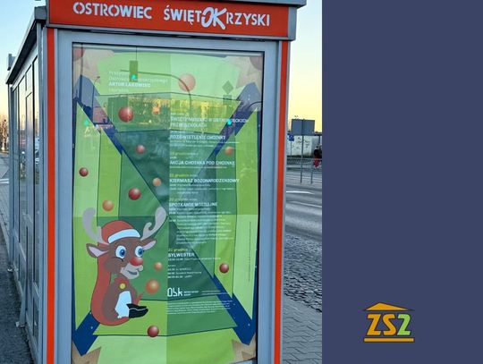 Tegoroczną graficzna oprawę zarówno kartek świątecznych jak i plakatów informujących o świątecznych wydarzenia w Ostrowcu przygotował działający przy Zespole Szkół nr 2 Klub Kreatywnego Ucznia Indygo Piksele.