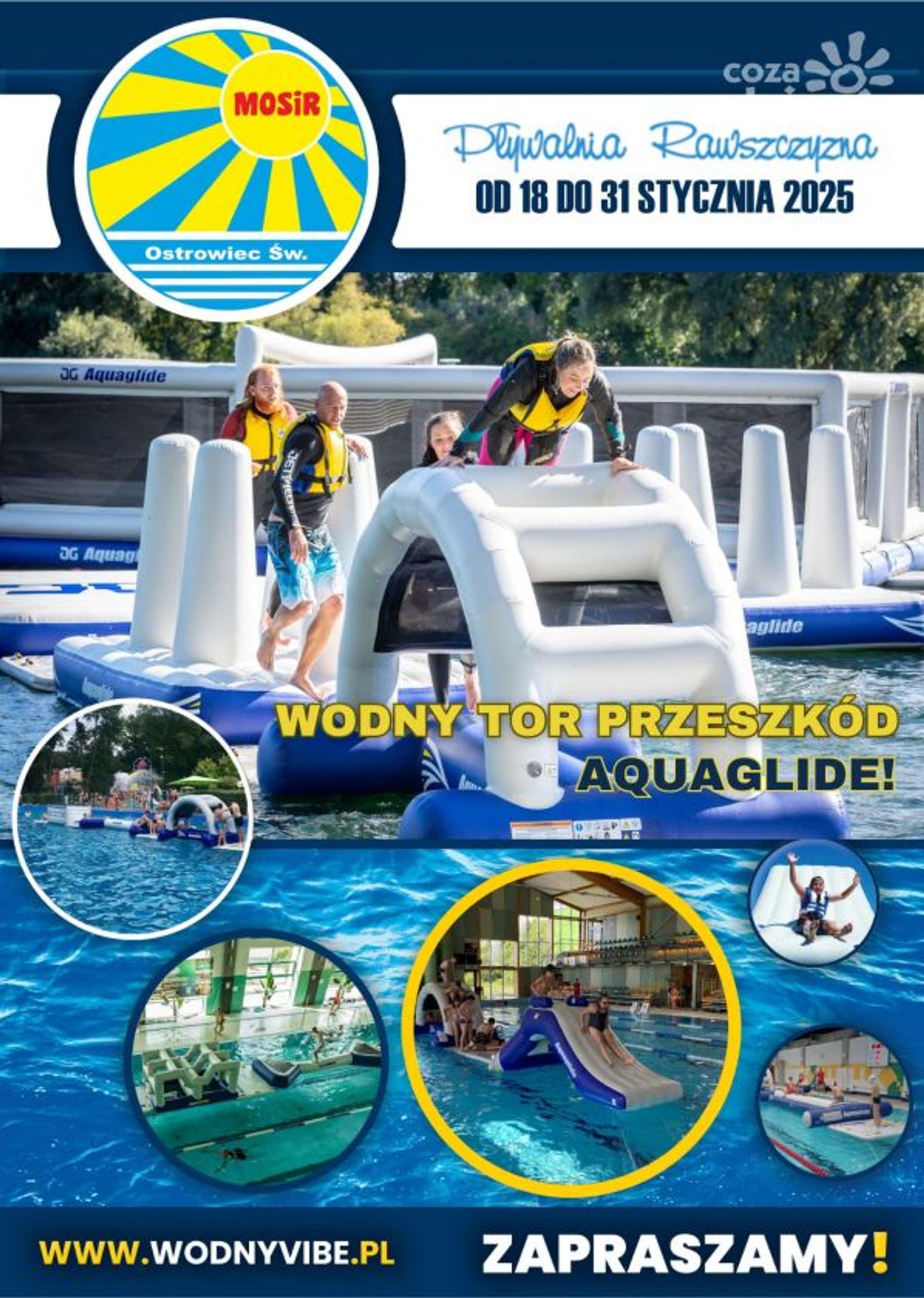 Kolejną atrakcją przygotowaną przez Miejski Ośrodek Sportu i Rekreacji na ferie jest wodny tor przeszkód. Od 20 stycznia do 2 lutego na Pływalni Rawszczyzna dostępny będzie zestaw nadmuchiwanych przeszkód, których pokonanie wymagać będzie sprawności ruchowej. Atrakcja będzie dostępna dla dzieci powyżej 7 roku życia. Osoby w wieku 7-12 lat będą mogły korzystać z toru pod opieką osoby dorosłej. Aby zapewnić maksymalny poziom bezpieczeństwa, osoby na torze będą musiały mieć założone kamizelki ratunkowe zapewnione przez ratowników pływalni. Korzystanie z wodnego toru przeszkód będzie oczywiście bezpłatne.
