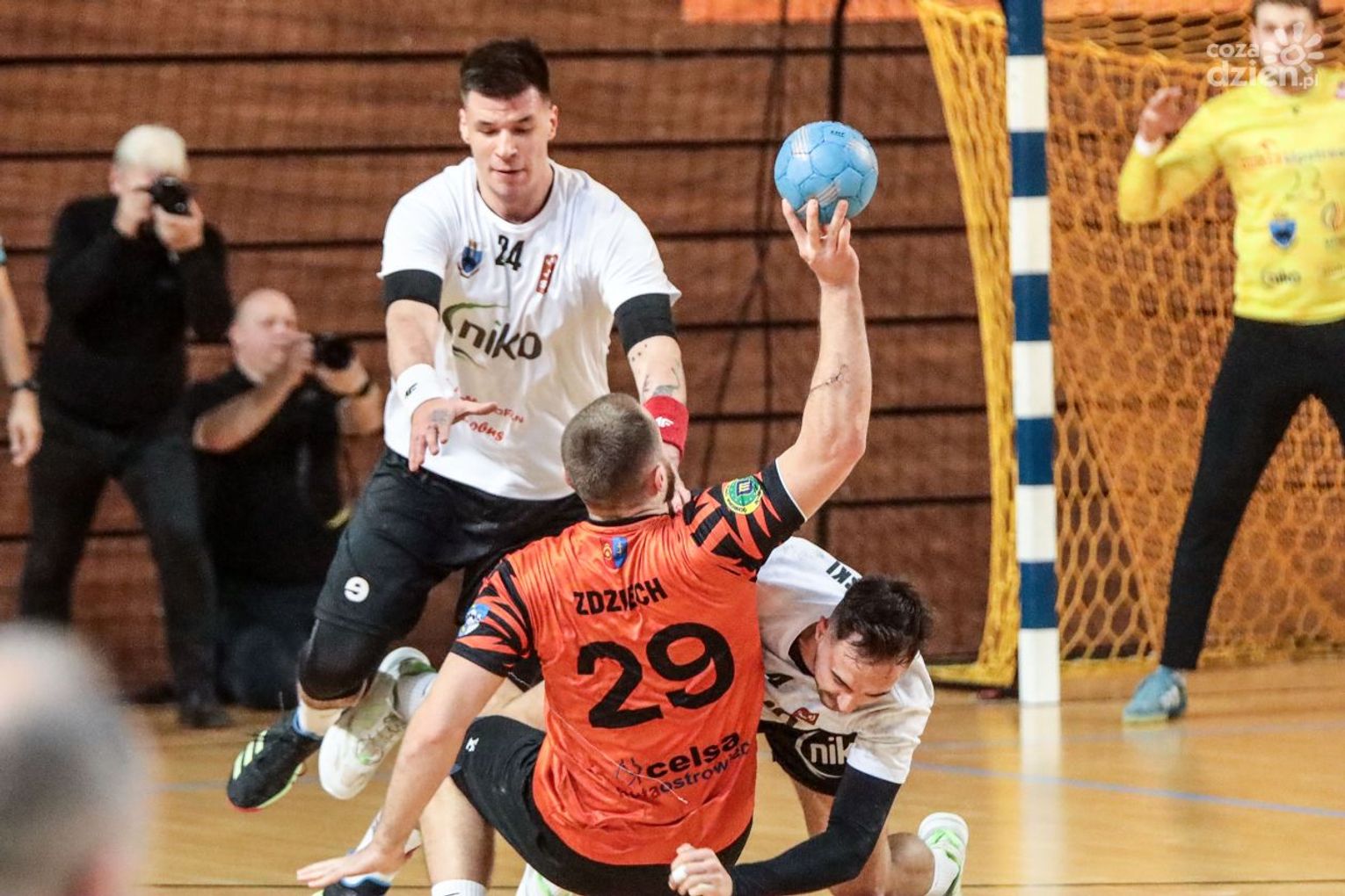 Szybkie tempo gry, które narzucili wojownicy, zespół gości wytrzymał tylko do 10 minuty meczu. Od stanu 8:7 ostrowczanie systematycznie powiększali przewagę, a do przerwy prowadzili już 19:12. W drugiej części sytuacja nie uległa zmianie. Twarda gra w obronie zespołu KSZO poskutkowała nie tylko czerwoną kartką w 43 minucie dla Adriana Wojkowskiego, ale również niską liczbą straconych bramek. W ataku świetnie sobie radzili w szczególności Mateusz Bysiak, który zdobył 11 bramek oraz Jakub Makuła, który bramkarzy gości pokonał dziesięciokrotnie. Ostatecznie wojownicy wygrali różnicą aż 13 bramek.