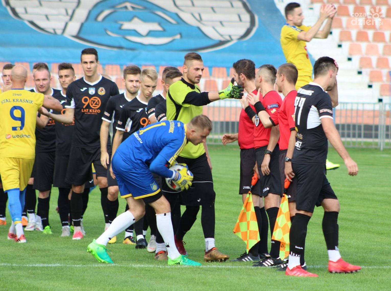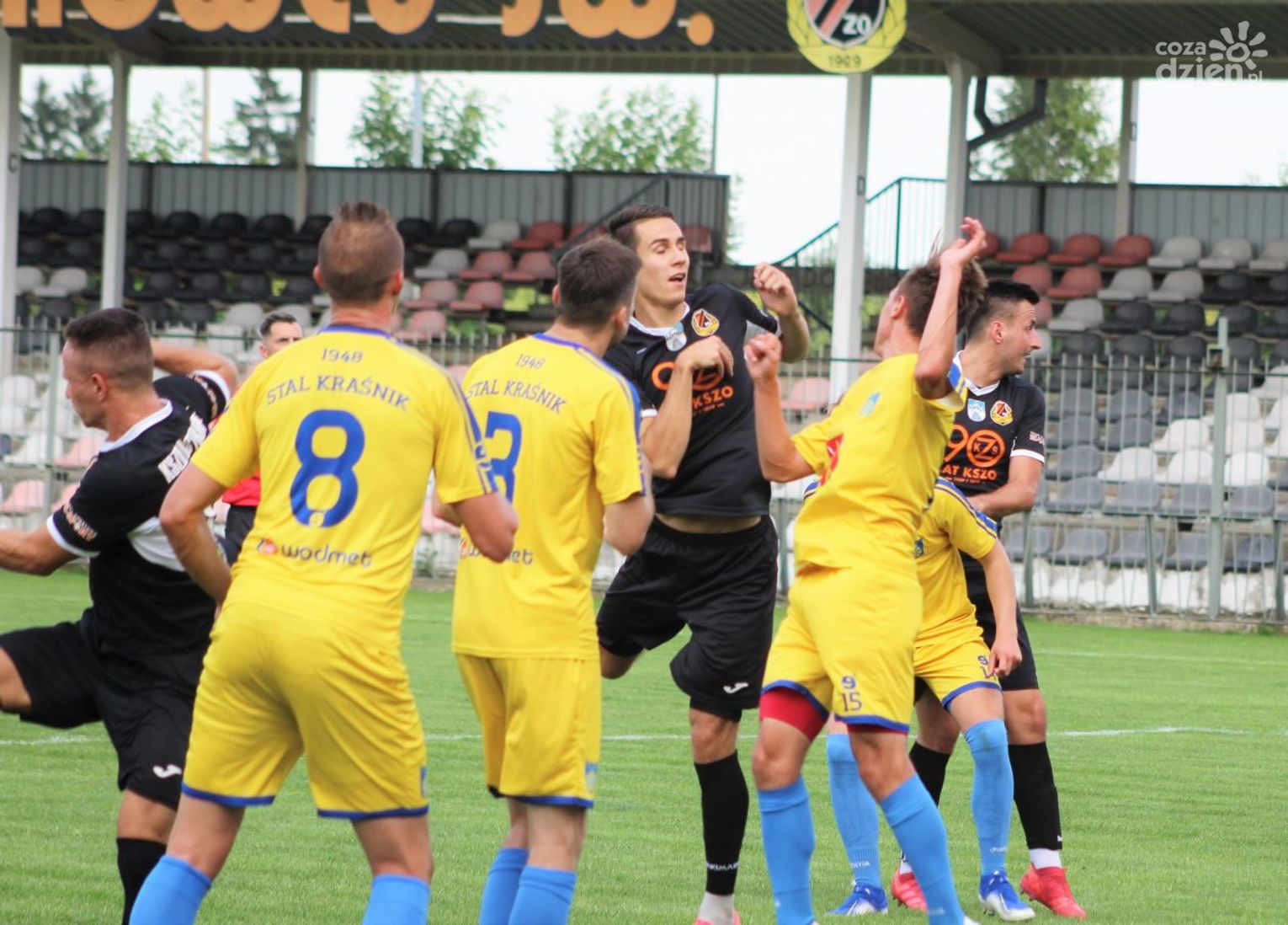 W pierwszej połowie oglądaliśmy wyrównane spotkanie, sytuacji bramkowych nie było wiele, najlepszą mieli goście, jednak ostrowczan uratował słupek. W drugiej części piłkarze KSZO przejęli inicjatywę na boisku, rywal posiadał znacznie mniej liczną kadrę i z minuty na minutę, po zmianach zarządzonych przez trenera Marcina Wróbla przewaga KSZO wzrastała. Efektem były trzy zdobyte bramki w tej części gry. W 57 minucie Maciej Miłek wykończył głową dośrodkowanie z rzutu rożnego, a w końcówce najpierw Kamil Łokieć zdecydował się na indywidualne wejście w pole karne, a dwie minuty później Mateusz Mąka znalazł się w podobnej sytuacji. Obaj nasi zawodnicy nie dali szans bramkarzowi Stali w sytuacji sam na sam.