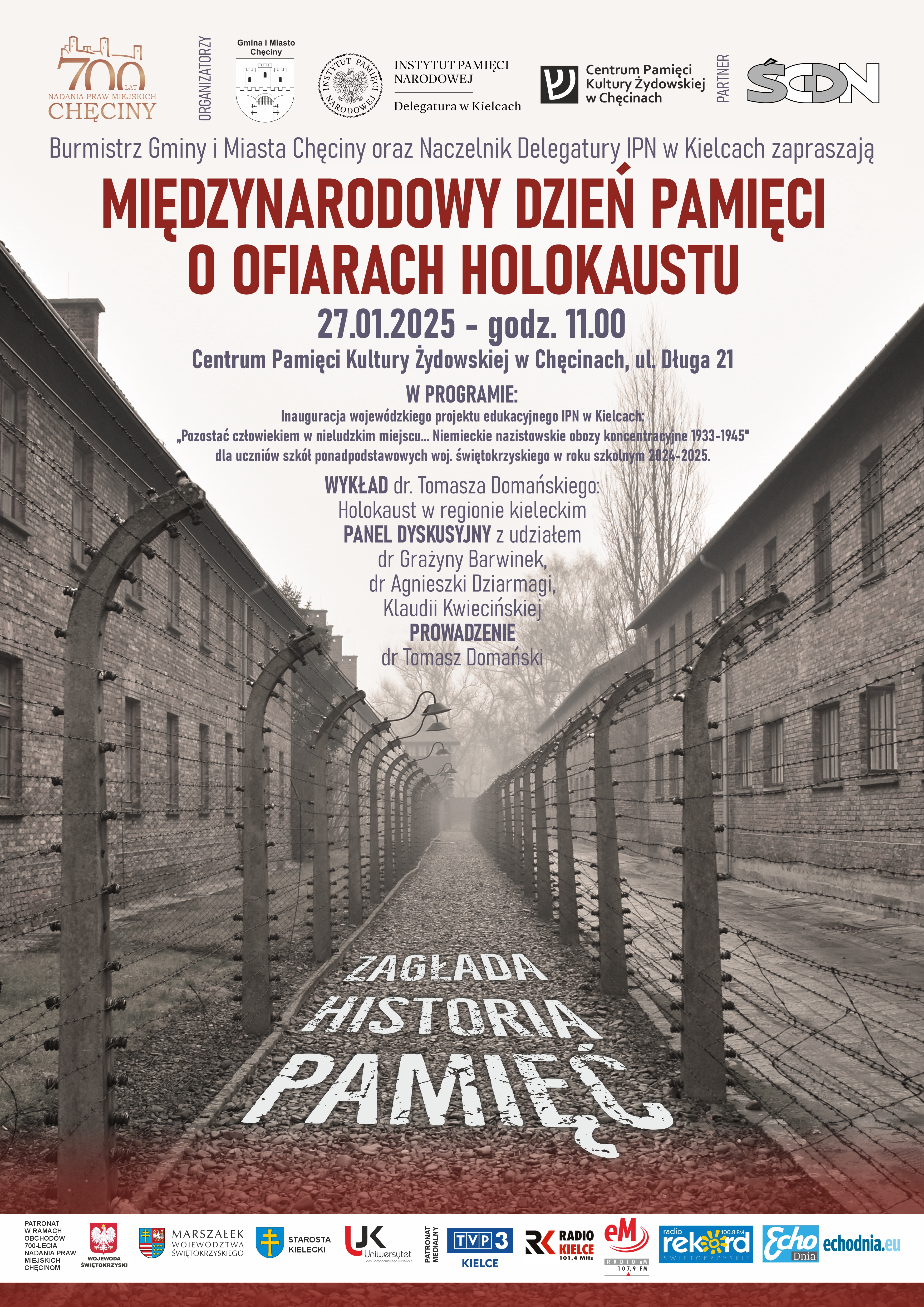 Wydarzenie organizowane z okazji obchodów 700-lecia nadania praw miejskich Chęcinom ma na celu upamiętnienie 80. rocznicy wyzwolenia obozu Auschwitz-Birkenau. Spotkanie rozpocznie się złożeniem kwiatów przed budynkiem dawnej synagogi, aby uczcić pamięć wszystkich zamordowanych w niemieckich obozach koncentracyjnych. Następnie uczestnicy będą mieli okazję wysłuchać wykładu dr. Tomasza Domańskiego pt. „Holokaust w regionie kieleckim”, a później wziąć udział w dyskusji z regionalistami, którzy zajmują się historią Chęcin i kielecczyzny. W trakcie wydarzenia odbędzie się także inauguracja wojewódzkiego projektu edukacyjnego IPN w Kielcach: „Pozostać człowiekiem w nieludzkim miejscu… Niemieckie nazistowskie obozy koncentracyjne 1933-1945”.