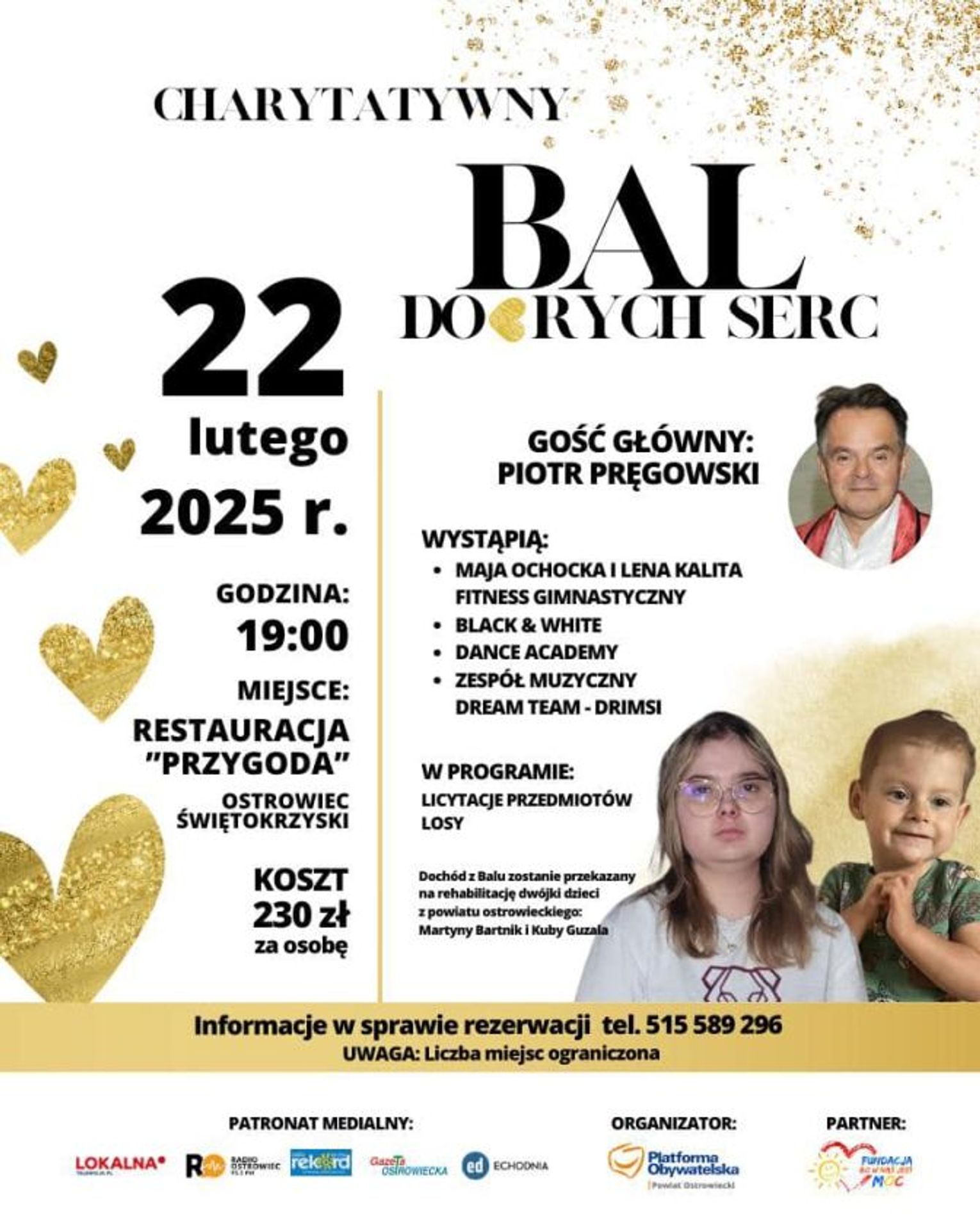 Charytatywny Bal Dobrych Serc organizuje na koniec karnawału ostrowiecka Platforma Obywatelska. Dochód z balu będzie przeznaczony na rehabilitację dwójki dzieci Martynki Bartnik oraz Kubusia Guzala, którzy są podopiecznymi Fundacji Fundacja Bo w Nas jest Moc.