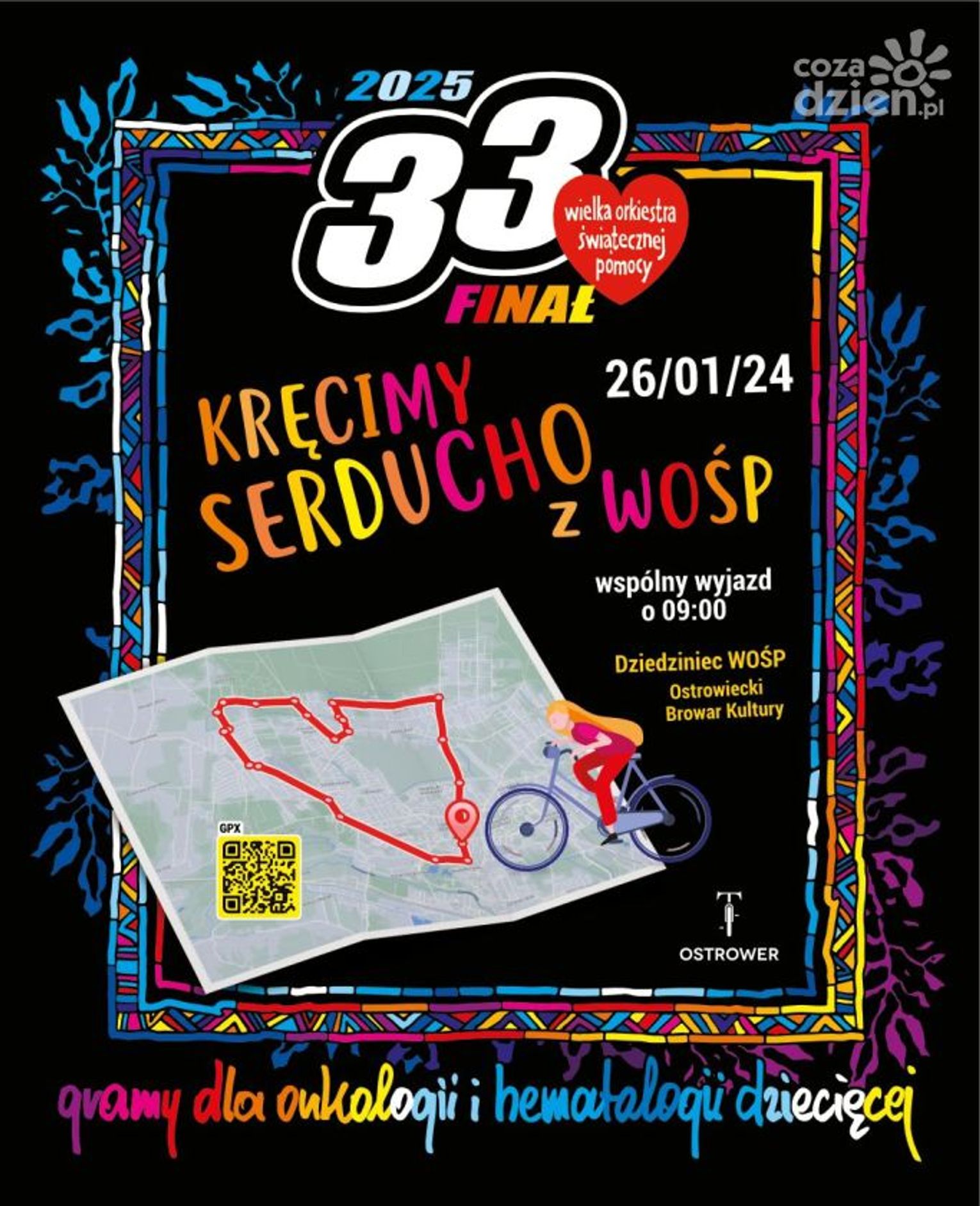 W niedzielę 26 stycznia o godz. 9:00 miłośnicy jazdy na rowerze wystartują z dziedzińca OBK im. Wielkiej Orkiestry Świątecznej Pomocy. Potem będą jechali ulicami Ostrowca tak, by ich ślad wyznaczył serduszko WOŚP.