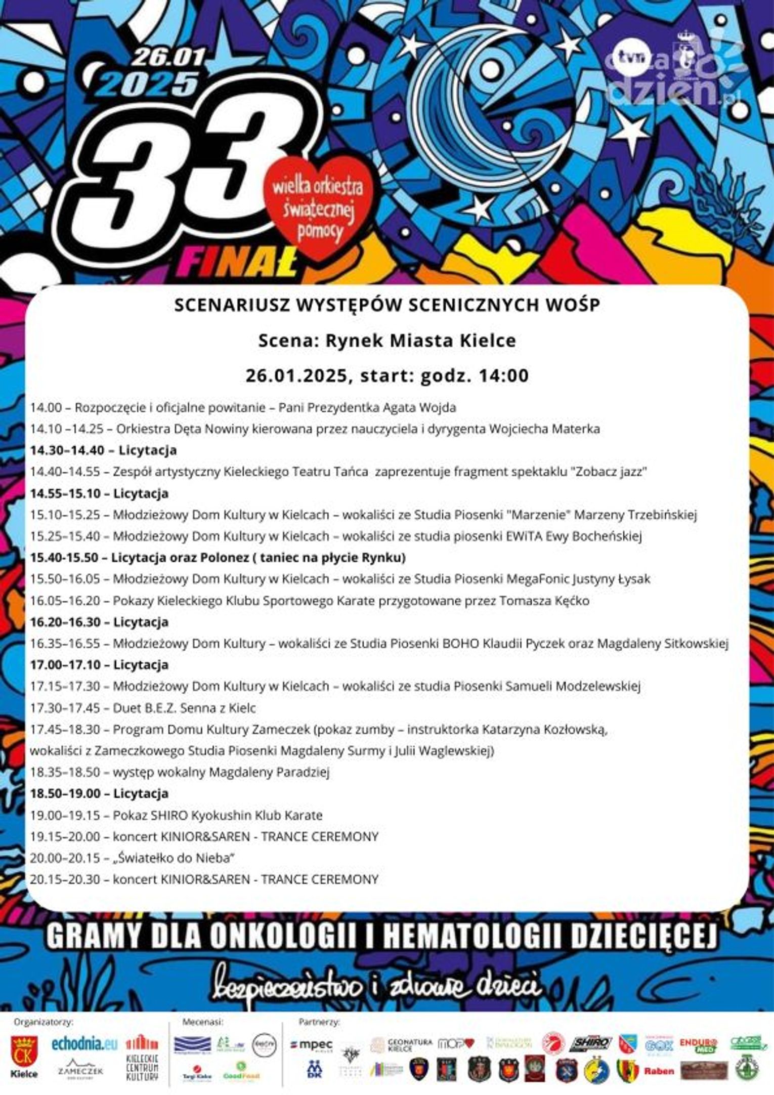 Wielki finał WOŚP organizują w Kielcach wspólnie: Urząd Miasta, Świętokrzyski Urząd Wojewódzki i największy na świecie sztab 262 działający w redakcji „Echa Dnia” przy współpracy z Wojewódzkim Szpitalem Zespolonym.