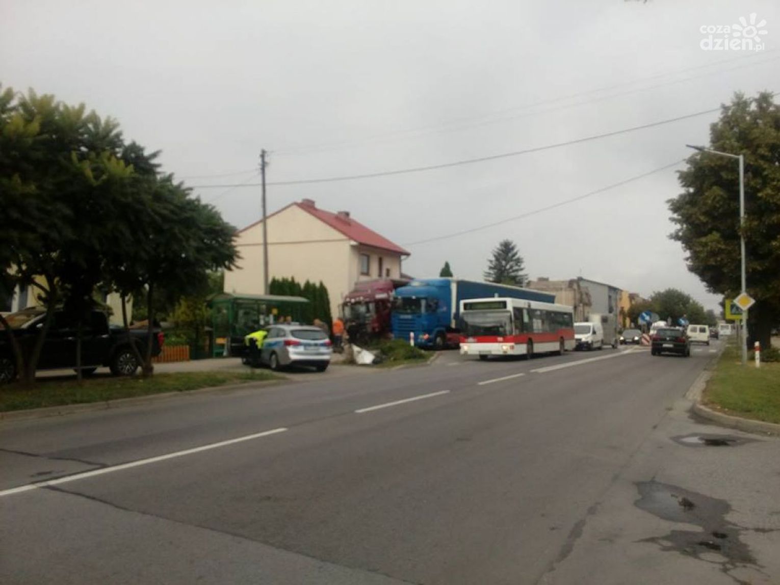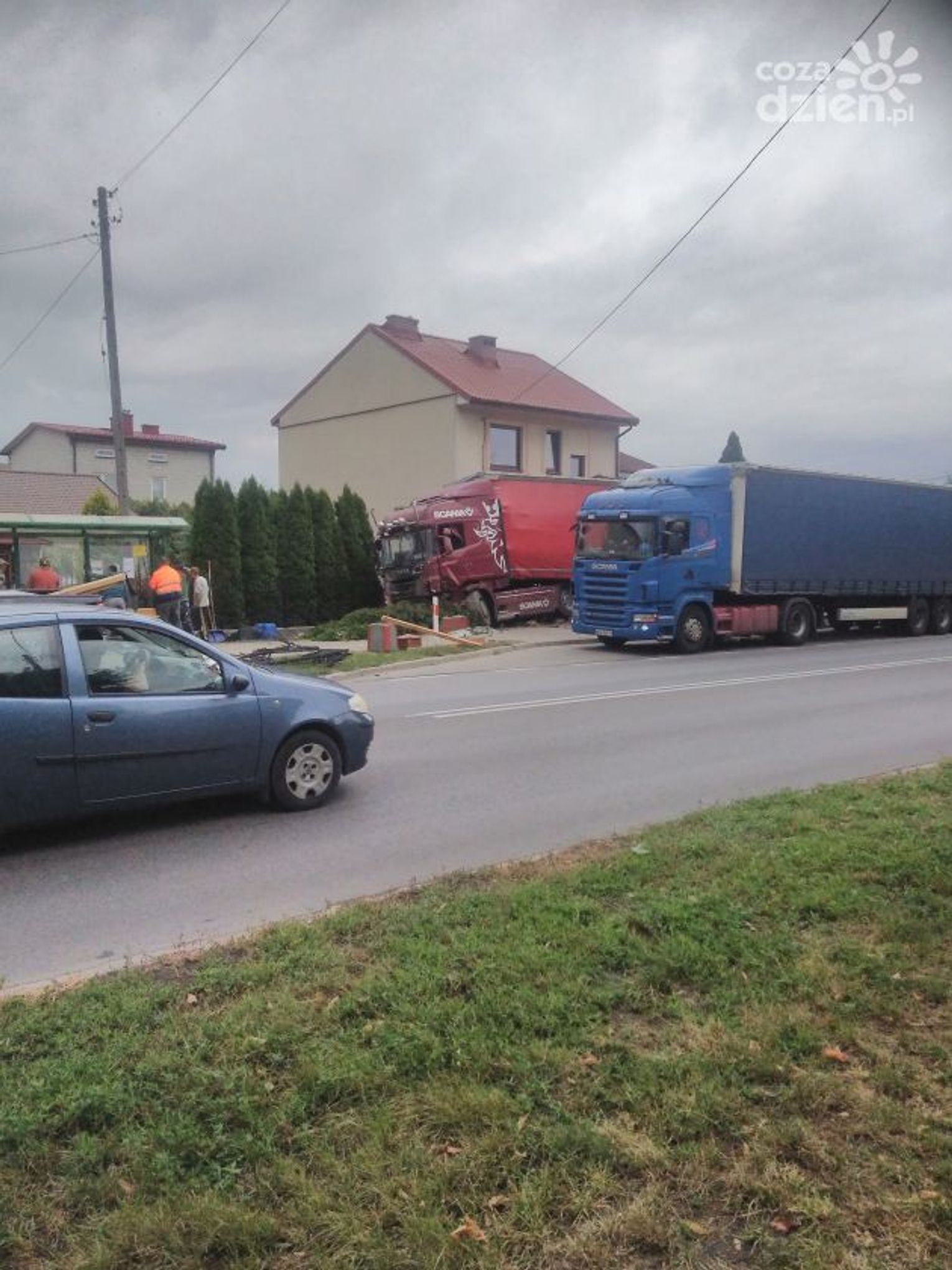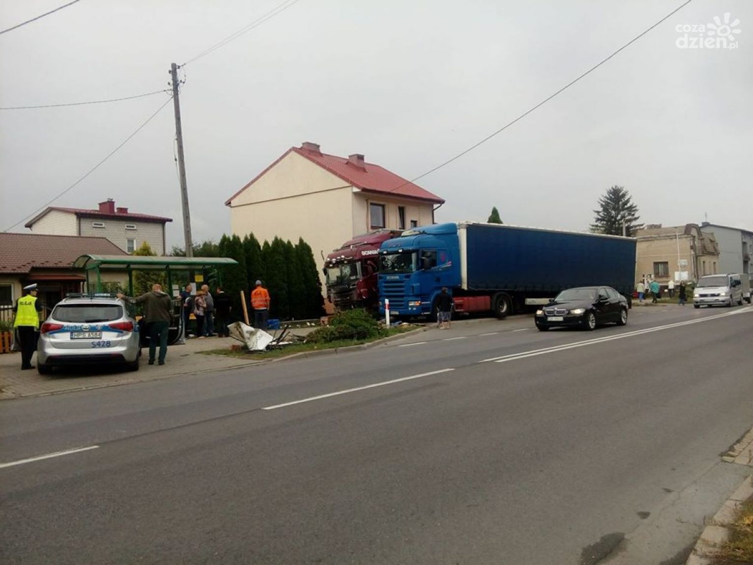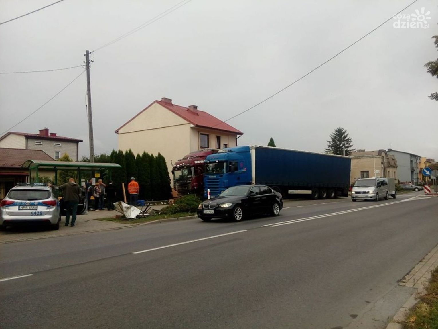 Dość feralnie rozpoczął się piątek trzynastego dla mieszkańców posesji przy ul. Sandomierskiej. Samochód ciężarowy marki Scania, przewożący materiały budowlane zderzył się z ich domem. TIR najpierw przejechał przez chodnik, uszkadzając po drodze przystanek MPK, staranował metolowe ogrodzenie i uderzył w murowany ganek. Konstrukcja ganku została częściowo zniszczona. Na szczęście w wyniku zdarzenia nikomu nic się nie stało. Dwójka mieszkańców ewakuowała się samodzielnie, a kierowca TIR-a, po przebadaniu przez zespół ratownictwa medycznego został na miejscu akcji.