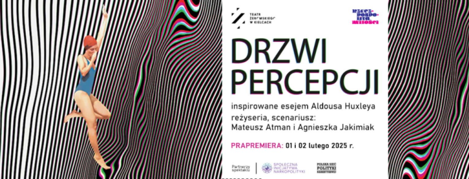 „Drzwi percepcji” to teatralna podróż inspirowana esejem Aldousa Huxleya. Tekst brytyjskiego filozofa stał się manifestem kontrkultury lat 60. i źródłem szerokiej fascynacji substancjami psychodelicznymi. My, w dobie kolejnej „rewolucji psychodelicznej”, pytamy, czy substancje psychoaktywne mogą być narzędziem zmiany, kluczem do lepszego zrozumienia siebie i otaczającego nas świata? Spektakl łączy edukację, performens, medytację i taniec, by eksplorować alternatywne drogi doświadczania rzeczywistości.