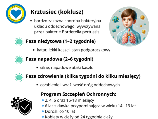 o ważne przeciwko krztuścowi nawet dorośli czy kobiety w ciąży mogą się szczepić. A do profilaktyki należy przede wszystkim higiena, czyli częste mycie rąk oraz unikanie kontaktu z chorymi.