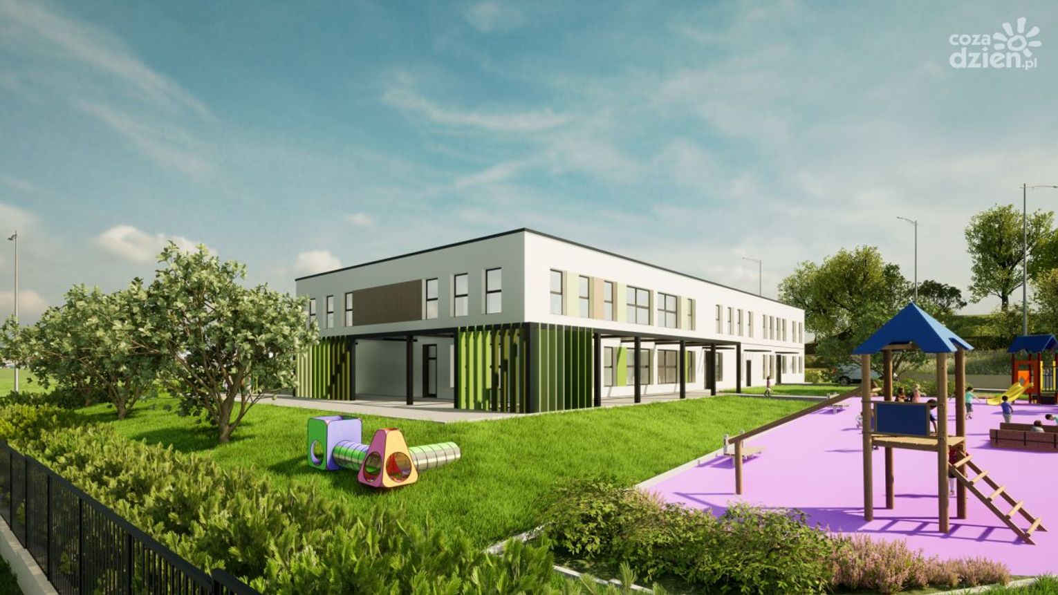 Przy żłobku powstanie plac zabaw z bezpieczną nawierzchnią i urządzeniami dla maluchów. Wybudowane będą chodniki i miejsca postojowe. Do dyspozycji będą również stojaki na rowery. Cały teren będzie ogrodzony, oświetlony i monitorowany.