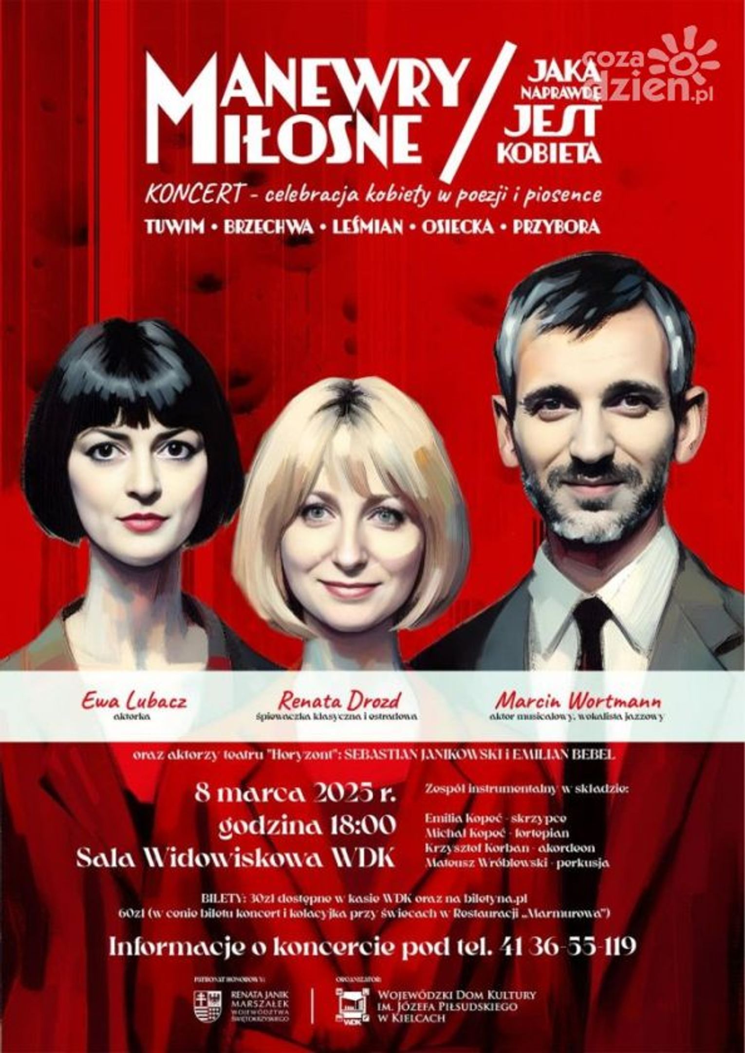 Wojewódzki Dom Kultury w Kielcach zaprasza na koncert o nazwie ,,Manewry miłosne'' 8 marca 2025 roku o godzinie 18:00 w Sali Widowiskowej w WDK-u. Wydarzenie będzie muzyczną podróżą w czasie, by ,,powracając jak za dawnych lat'' na nowo odkrywać to co bliskie sercu. Twórcy twierdzą, że miłość i muzyka są rodzaju żeńskiego i dzięki temu najlepiej o kobiecie opowiedzą piosenki o miłości.