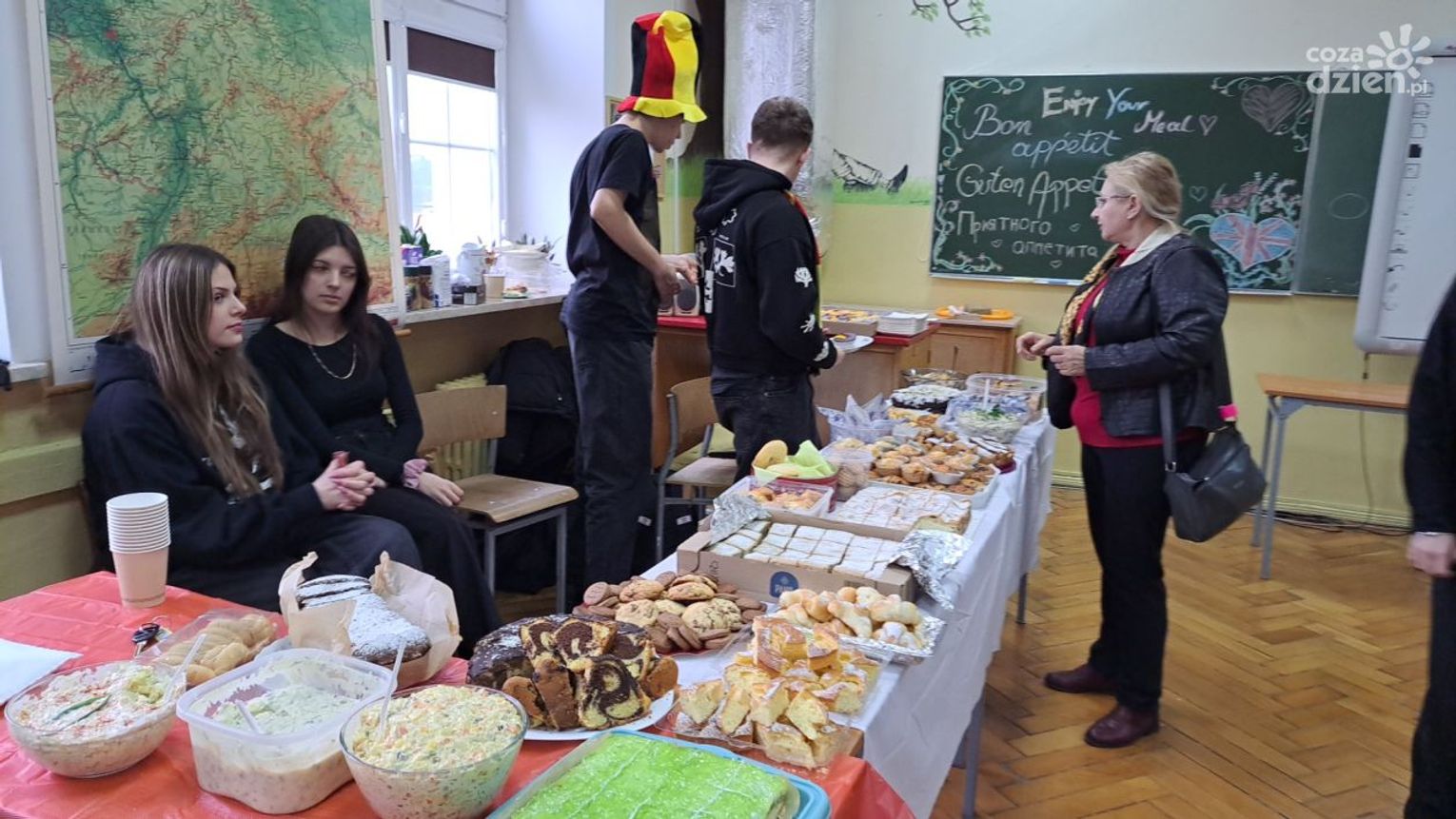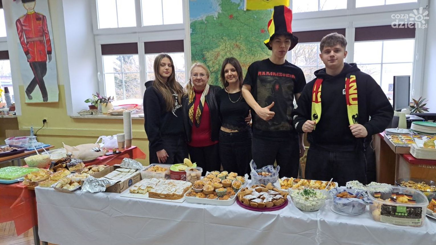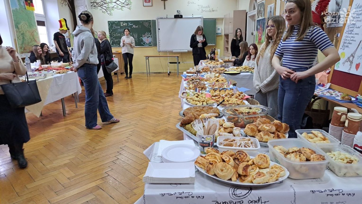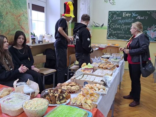 - takie wydarzenie robimy co roku. Zazwyczaj robimy je w Mikołajki, ale w tym roku tak żegnamy karnawał. Wszystkie języki obce, jakich uczmy się w szkole mają swoje stoły. Prezentujmy na nich potrawy z danego kraju -mówiła Maja Sałaga z klasy uczącej się angielskiego.