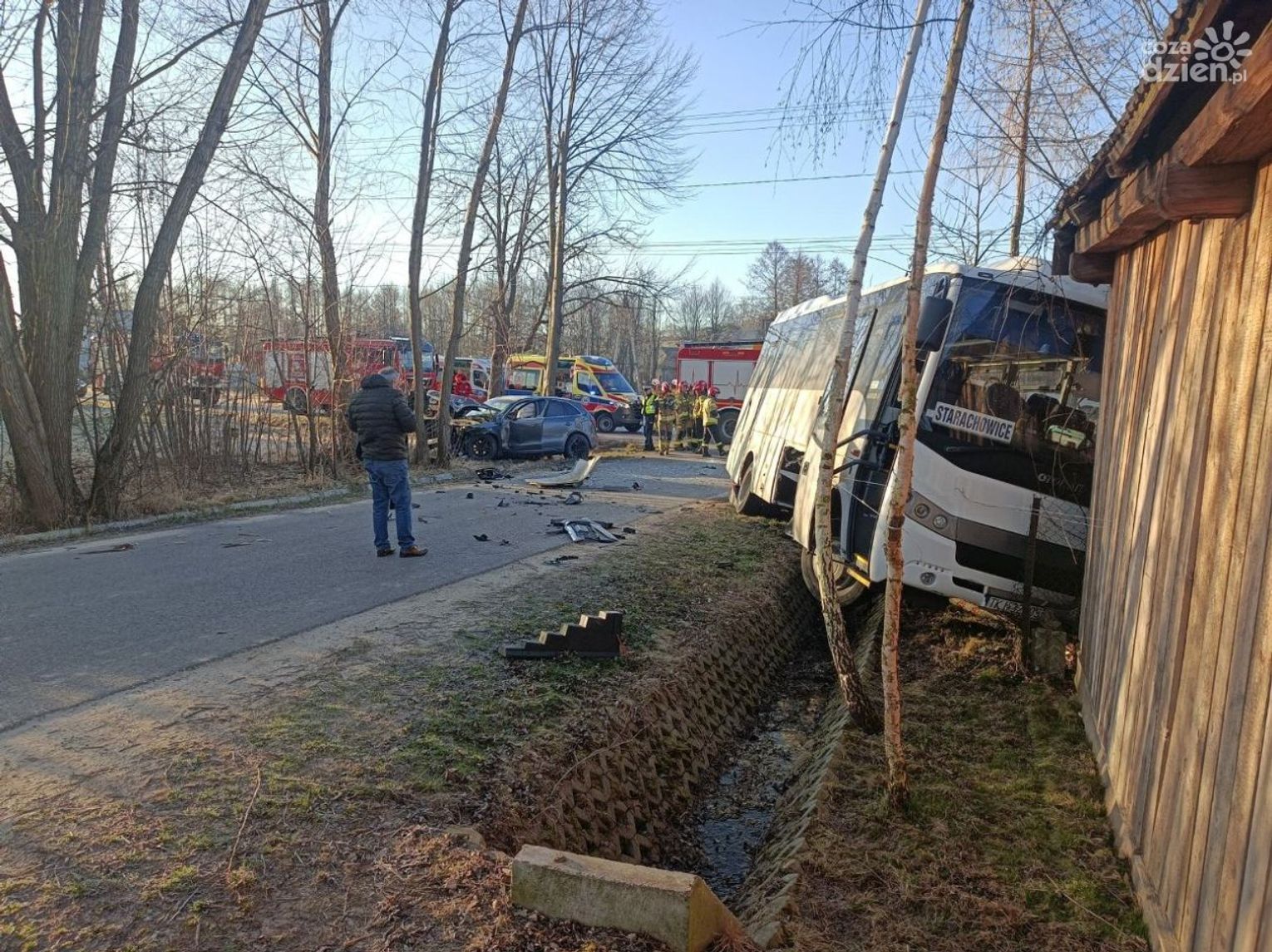 Chwilę po godzinie 6 rano na jednej z lokalnych dróg autokar kursowy z Pawłowa do Starachowic, przewożący uczniów zderzył się z osobowym audi.