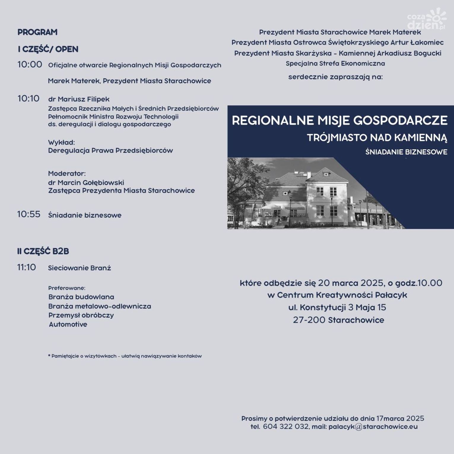A zainteresowani tematyką tego wydarzenie przedsiębiorcy spotkają się w Starachowicach już w czwartek, 21 marca w tamtejszym Centrum Kreatywności Pałacyk.
