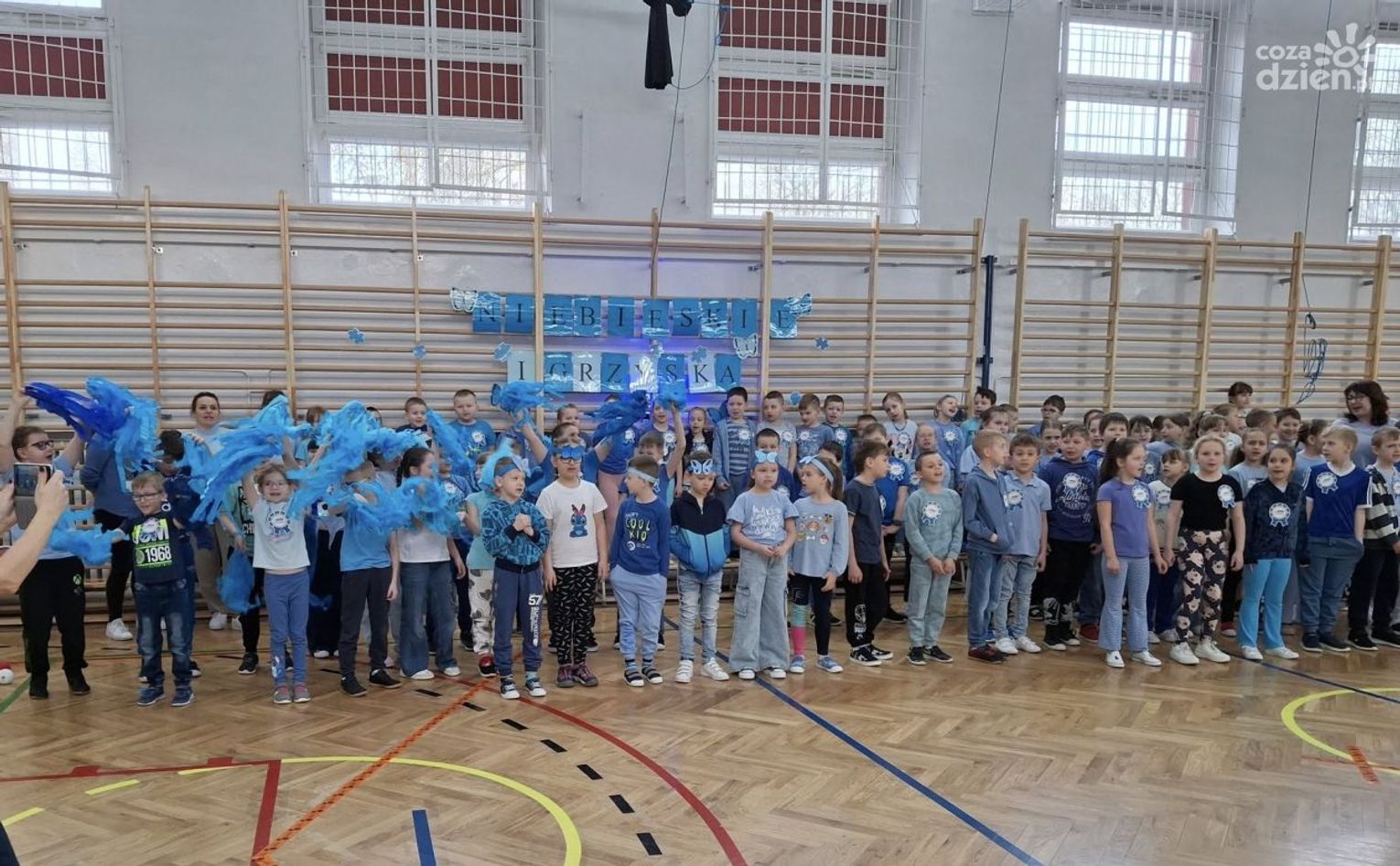 Wszyscy, ubrani na niebiesko, rozpoczęli sportową przygodę od wspólnego odśpiewania hymnu Niebieskich Igrzysk, co stworzyło niezwykłą atmosferę.