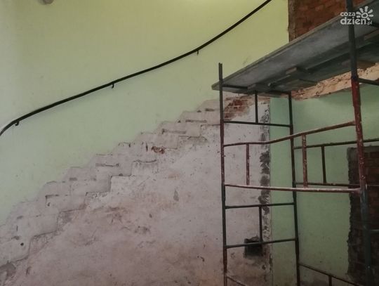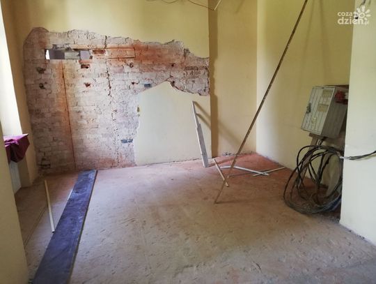 W Pałacu skuto podłogi wyburzono stare schody prowadzące do sal w piwnicach. Wokół obiektu wykonano prace porządkowe.