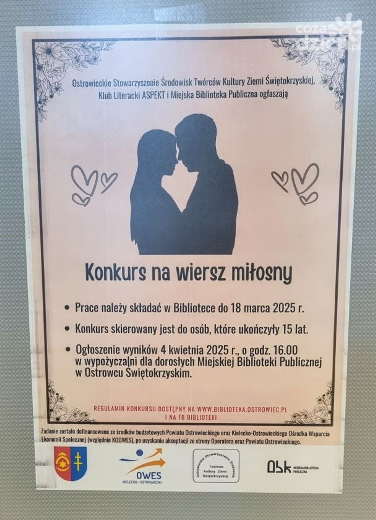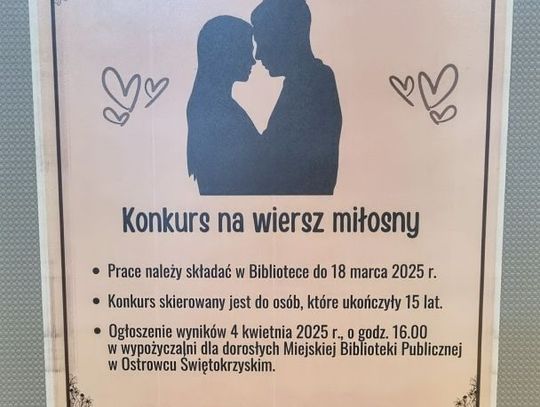 Rozstrzygnięto konkurs na wiersz o miłości. Konkurs zorganizowało Ostrowieckie Stowarzyszenie Środowisk Twórców Kultury Ziemi Świętokrzyskiej oraz Miejska Biblioteka Publiczna w Ostrowcu Świętokrzyskim.
