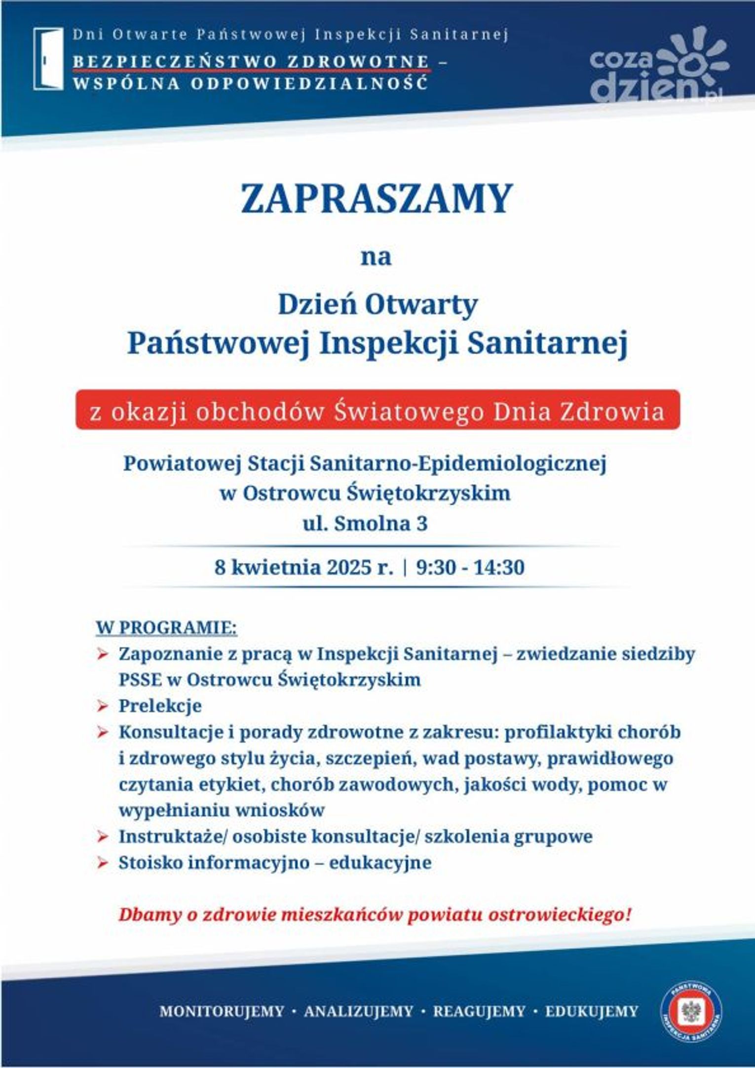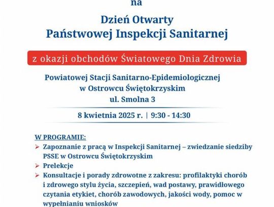 Tego dnia, czyli 8 kwietnia w ostrowieckim sanepidzie będzie też można zasięgnąć informacji na temat szczepień, chorób zawodowych czy jakości i przydatność wody pitnej.