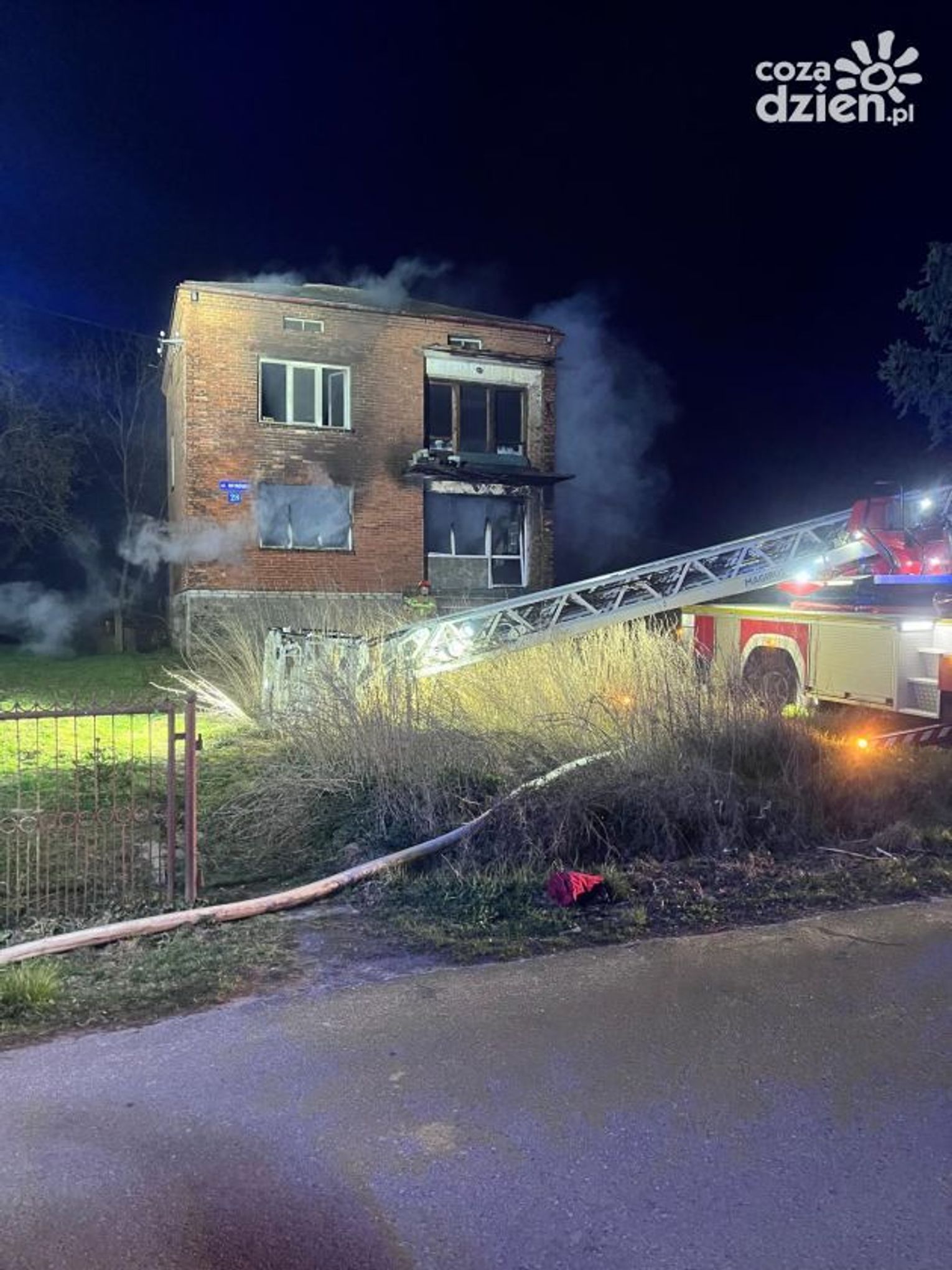 Po przybyciu na miejsce pierwszych zastępów straży pożarnej zastano rozwinięty pożar wewnątrz murowanego, piętrowego budynku. Na dachu obiektu znajdowały się dwie osoby, które, uciekając przed płomieniami, zostały odcięte od drogi ewakuacji.