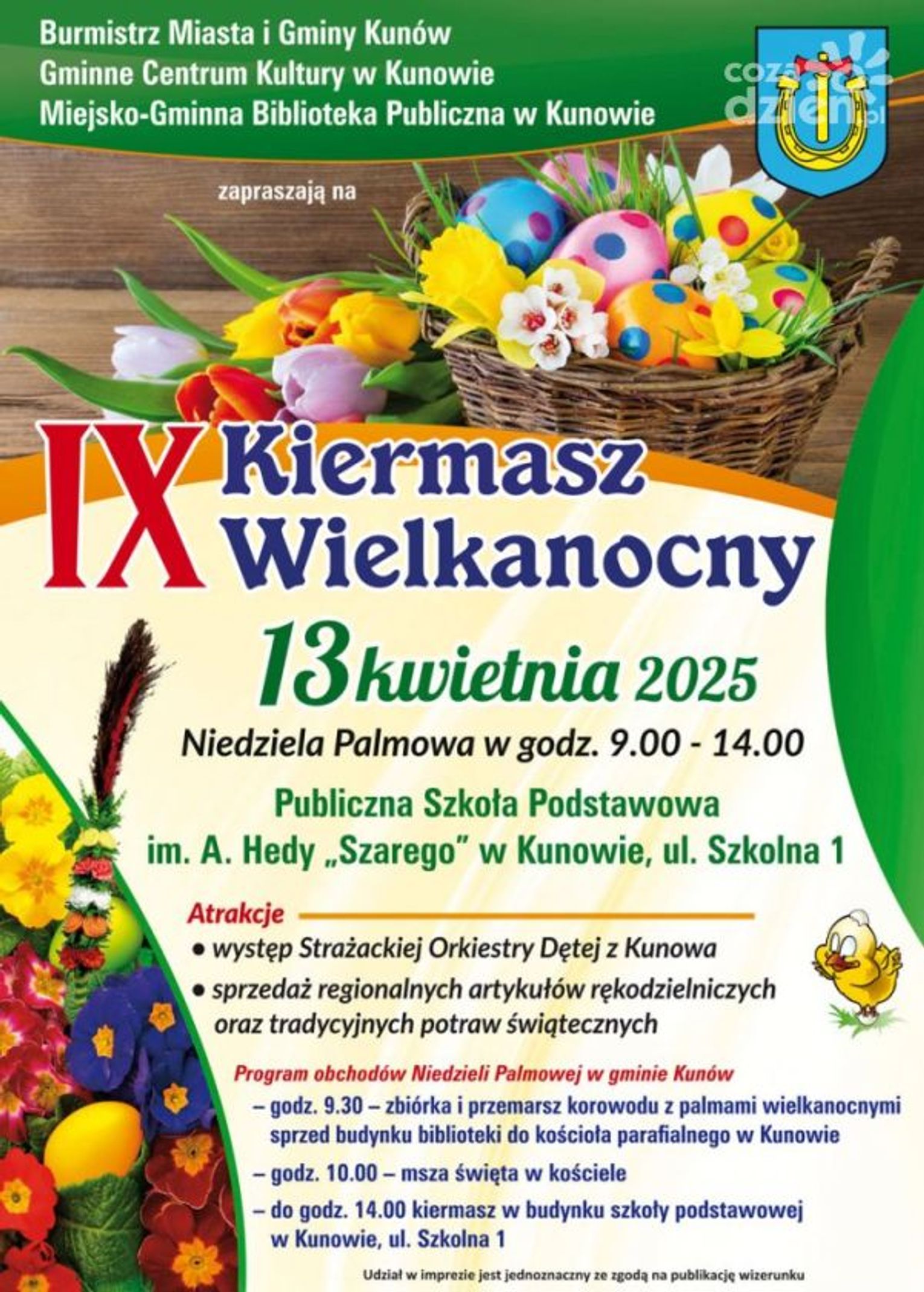 Za to w Kunowie, w tamtejszej szkole podstawowej odbędzie się dziewiąta już edycja Kiermaszu Wielkanocnego. Jego rozpoczęcie zaplanowano już na godzinę 9 a zakończenie o 14.