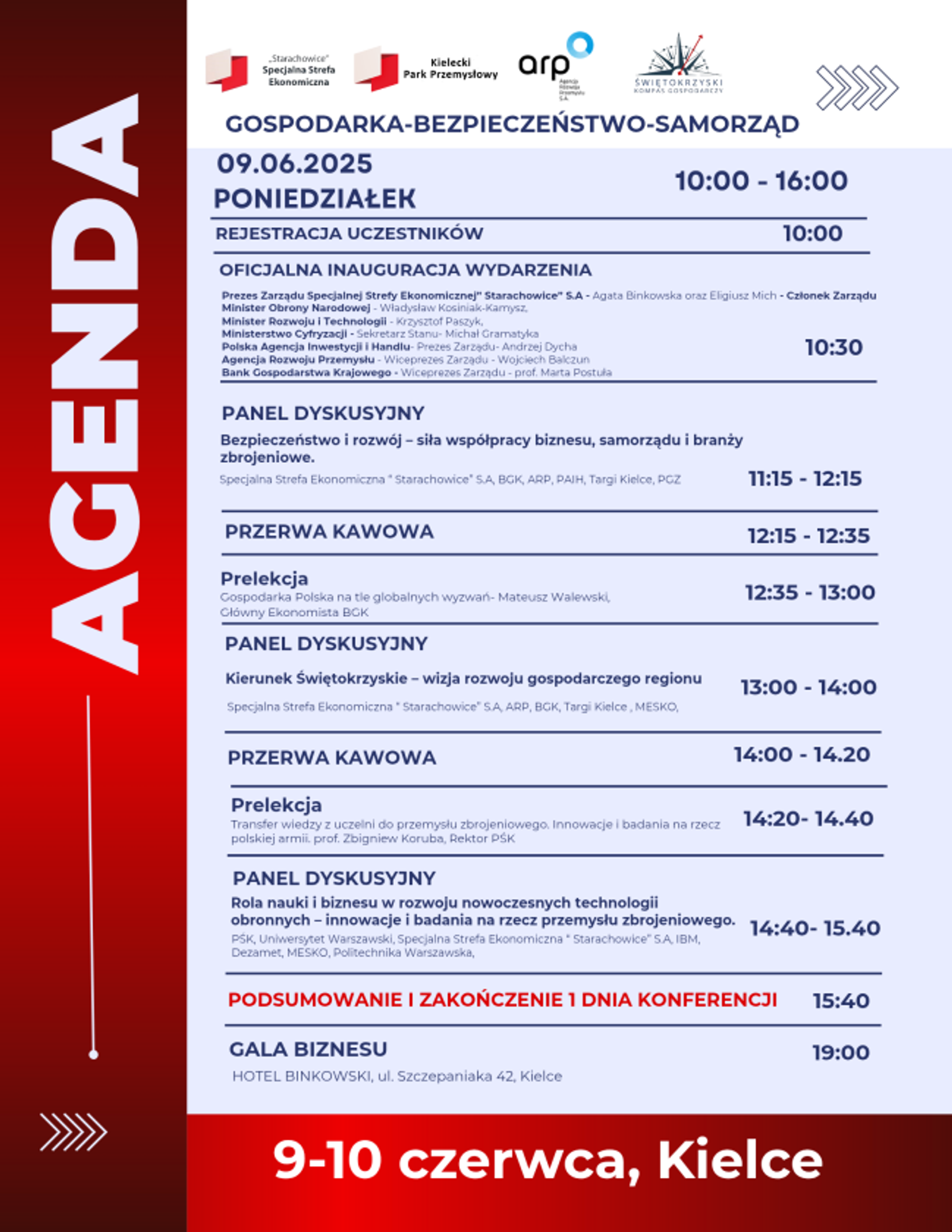 W pierwszym dniu tego wydarzenia odbywającym się na Targach Kielce, czyli 9 czerwca zaplanowani trzy panele, pierwszy dotyczący bezpieczeństwa i rozwoju a więc współpracy biznesu, samorządów z przemysłem zbrojeniowym, drugi pod nazwą Kierunek Świętokrzyskie ma dotyczyć wizji rozwoju gospodarczego a trzeci roli nauki i biznesu w rozwoju nowoczesnych technologii obronnych a więc innowacyjnych badań na rzecz przemysłu.