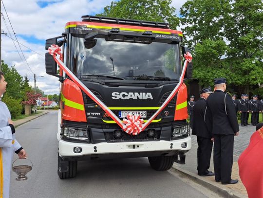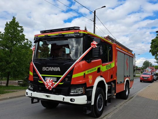 Strażacy z OSP Bodzechów otrzymali nowoczesny, uzbrojony wóz bojowy marki Scania. Pojazd o wadze 18 ton ze zbiornikiem na wodę o pojemności 5 tys. litrów zastąpił 32-letniego Jelcza. poza tymi technicznymi atutami, Jerzy Murzyn wójt gminy Bodzechów podkreśla jeszcze jedną zaletę tej gminnej inwestycji.