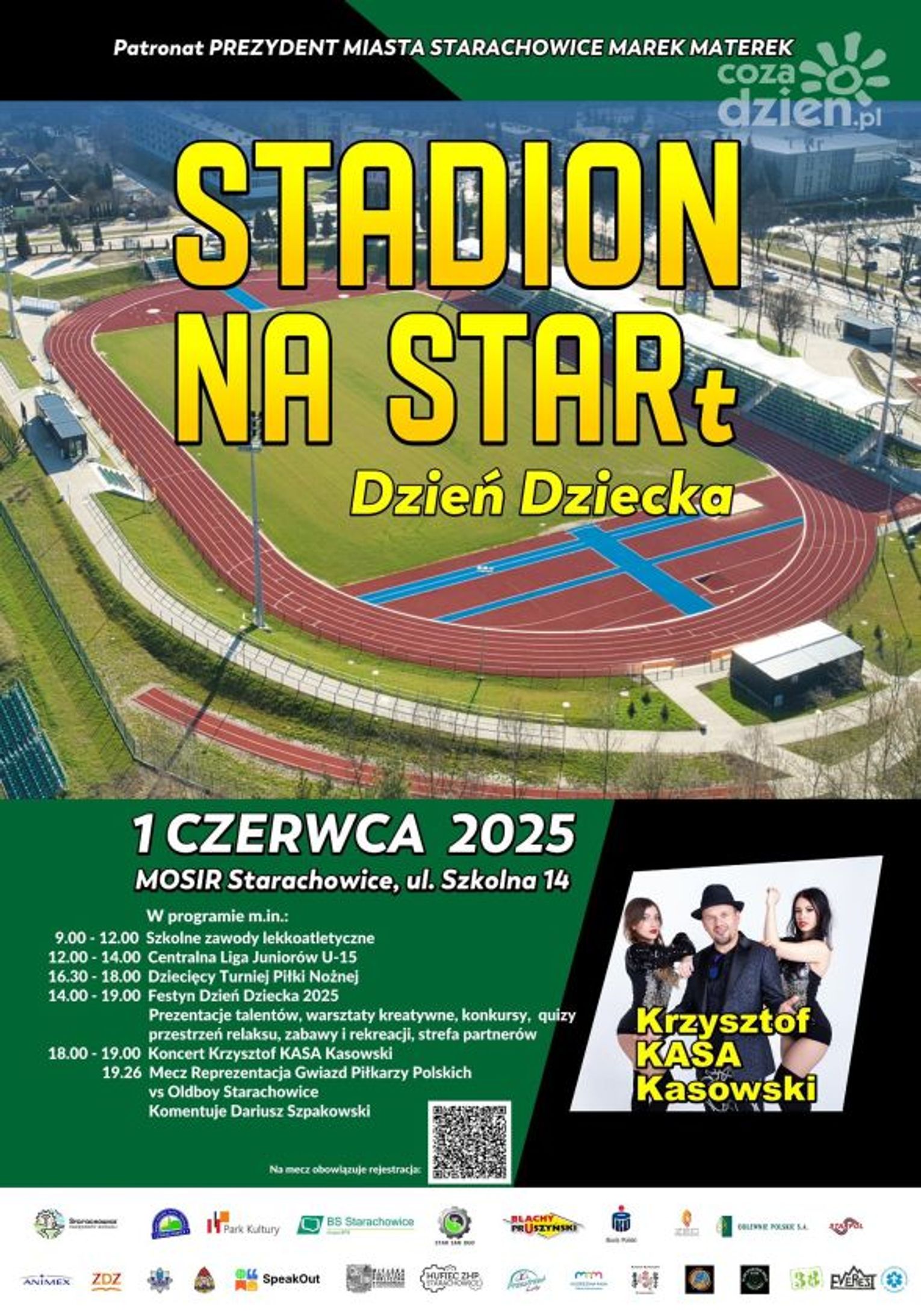 - 1 czerwca zapraszam na tereny Miejskiego Sztucznego Sportu i Rekreacji w Starachowicach. Przygotowaliśmy dla Państwa mnóstwo atrakcji. Zapraszamy również na Stadion Miejski w Starachowicach. O godzinie 18.00 Krzysztof "Kasa" Kasowski wystąpi dla wszystkich przybyłych. Natomiast o godzinie 19.26 na tej murawie wystąpią reprezentacja gwiazd piłkarzy polskich kontra Oldboye w Starachowicach. To wydarzenie komentować będzie dla Państwa Dariusz Szpakowski. Będziecie Państwo mogli zobaczyć na własne oczy, jak prezentuje się odnowiony stadion w Starachowicach- zachęcał do udziału w niedzielnych wydarzeniach Marek Materek prezydent Starachowic.