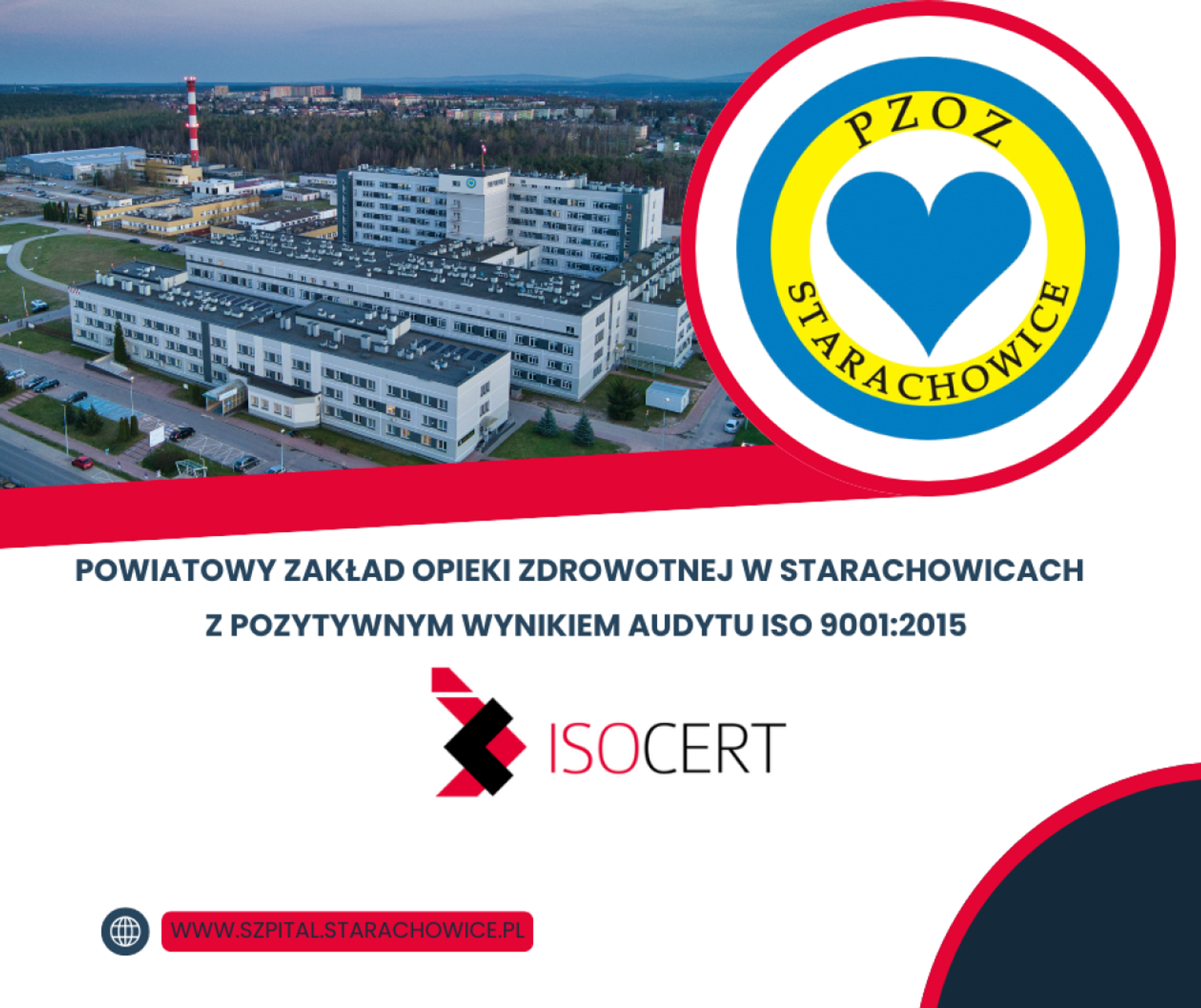 Powiatowy Zakład Opieki Zdrowotnej w Starachowicach posiada certyfikat systemu zarządzania jakością nieprzerwanie od 2007 roku. To oznacza, że placówka przez ten czas utrzymuje wysoki poziom świadczonych usług medycznych określonych właśnie normami ISO. Przekłada się to na procesy leczenia a przede wszystkim jakość opieki nad pacjentami.