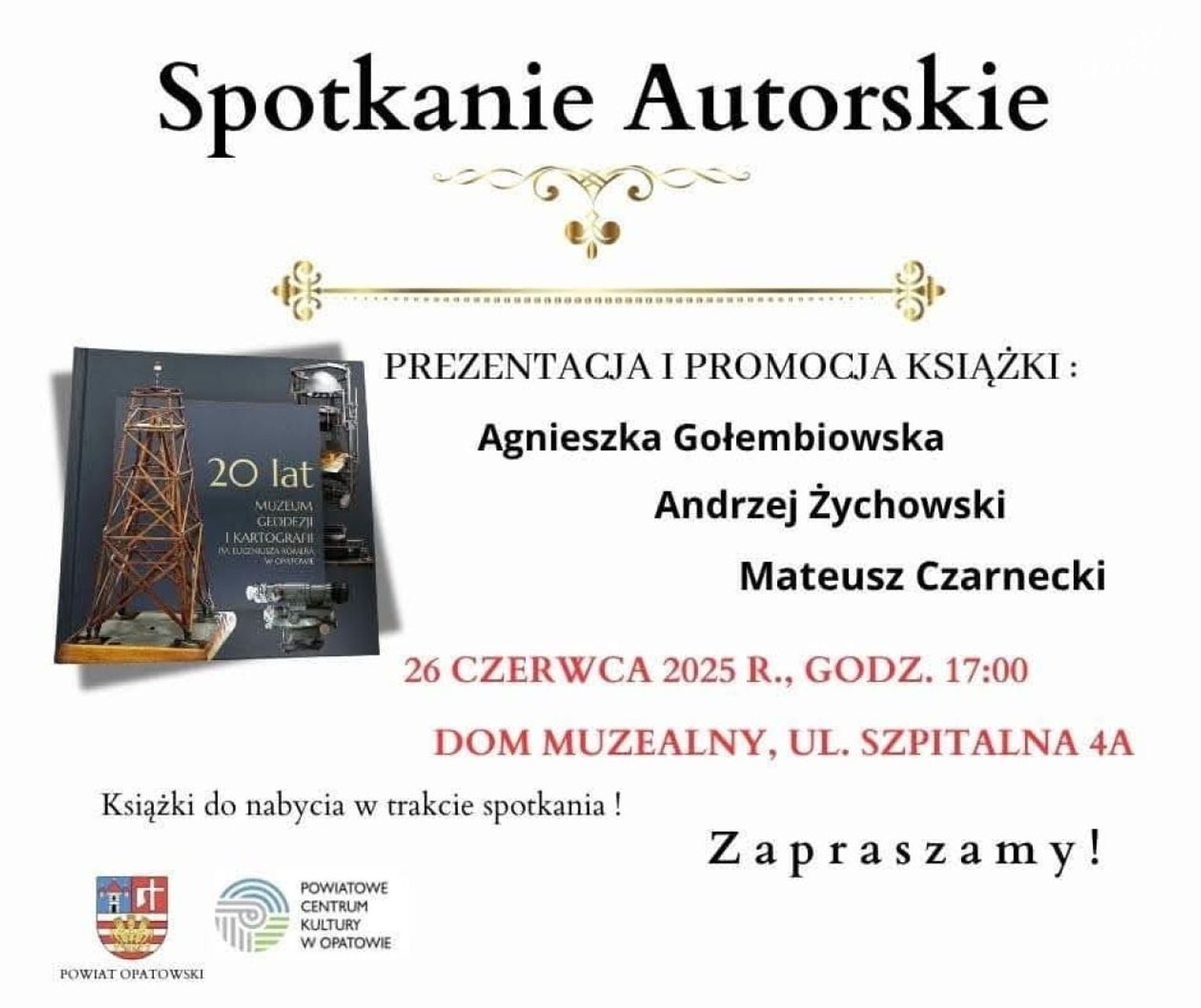 W trakcie spotkanie będzie możliwość zakupu tej książki. Okazją do jej napisania jest rocznica 20-lecia działalności opatowskiego Muzeum Geodezji i Kartografii.
