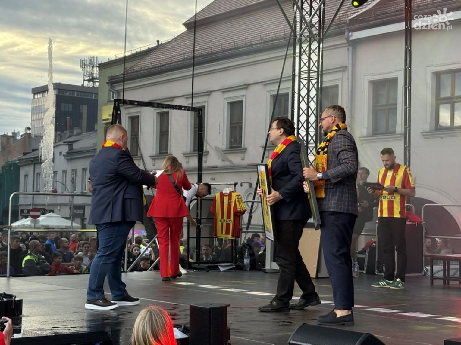 Dla kibiców Korony Kielce to była prawdziwa gratka — wydarzenie, które połączyło sportowe emocje z sentymentalną podróżą przez historię klubu. W samym sercu miasta, na kieleckim Rynku, zgromadziły się tłumy fanów: od najmłodszych, którzy dopiero zaczynają swoją przygodę z „Żółto-Czerwonymi”, po tych, którzy są z drużyną od jej początków, gdy Korona rywalizowała w regionalnych ligach w latach 70. i 80.