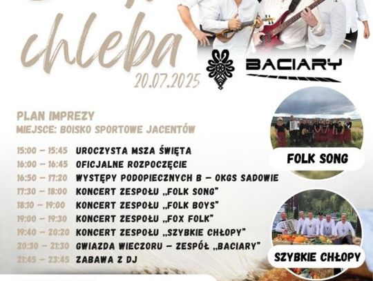 A tegoroczne wydarzenie będzie odbywało się na boisku sportowym w Jacentowie i będzie przede wszystkim ludowe akcenty, bowiem wszyscy artyści jacy pojawią się na scenie będą wykonywali muzykę o folkowym charakterze.
