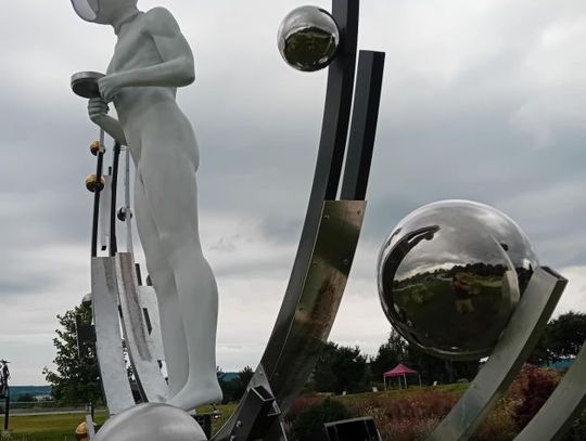 Statua składa się z kilku części. – Pierwsza przedstawia korpus rakiety i została wykonana ze stali nierdzewnej, druga to orbity z profili aluminiowych z kulami symbolizującymi planety, a całość została zwieńczona białą sylwetą kosmonauty, który trzyma w rękach pusta miskę po pierogach.