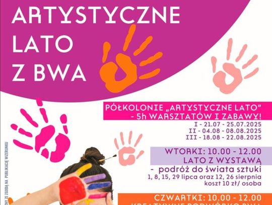 Za to w czwartki ostrowiecka galeria sztuki zaprasza dzieci na kreatywne podwórko. Pod tym hasłem BWA oferuje plenerowe zajęcia kreatywne z wykorzystaniem materiałów naturalnych i recyklingowych. W ten sposób dzieci uczą się przez sztukę – o ekologii, relacji człowieka z naturą i trosce o otaczający nas świat. A także tworzą, budują, przetwarzają z wyobraźnią i szacunkiem do środowiska. A najbliższe zajęcia odbędą się 31 lipca, między godz. 10 a 12. Tu też obowiązują zapisy telefonicznie 41 2632048, osobiście, wiadomość prywatna lub [email protected]