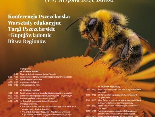 Tegoroczne Świętokrzyskie Święto Pszczoły, jakie odbywa się w Bałtowie, będzie miało aż trzydniowy przebieg. Zacznie się 15 sierpnia, w piątek i potrwa do niedzielnego wieczoru, 17 sierpnia. Będzie to już 18-sta edycja tego wyjątkowego połączenia targów z wydarzeniami społeczno- kulturalnymi.