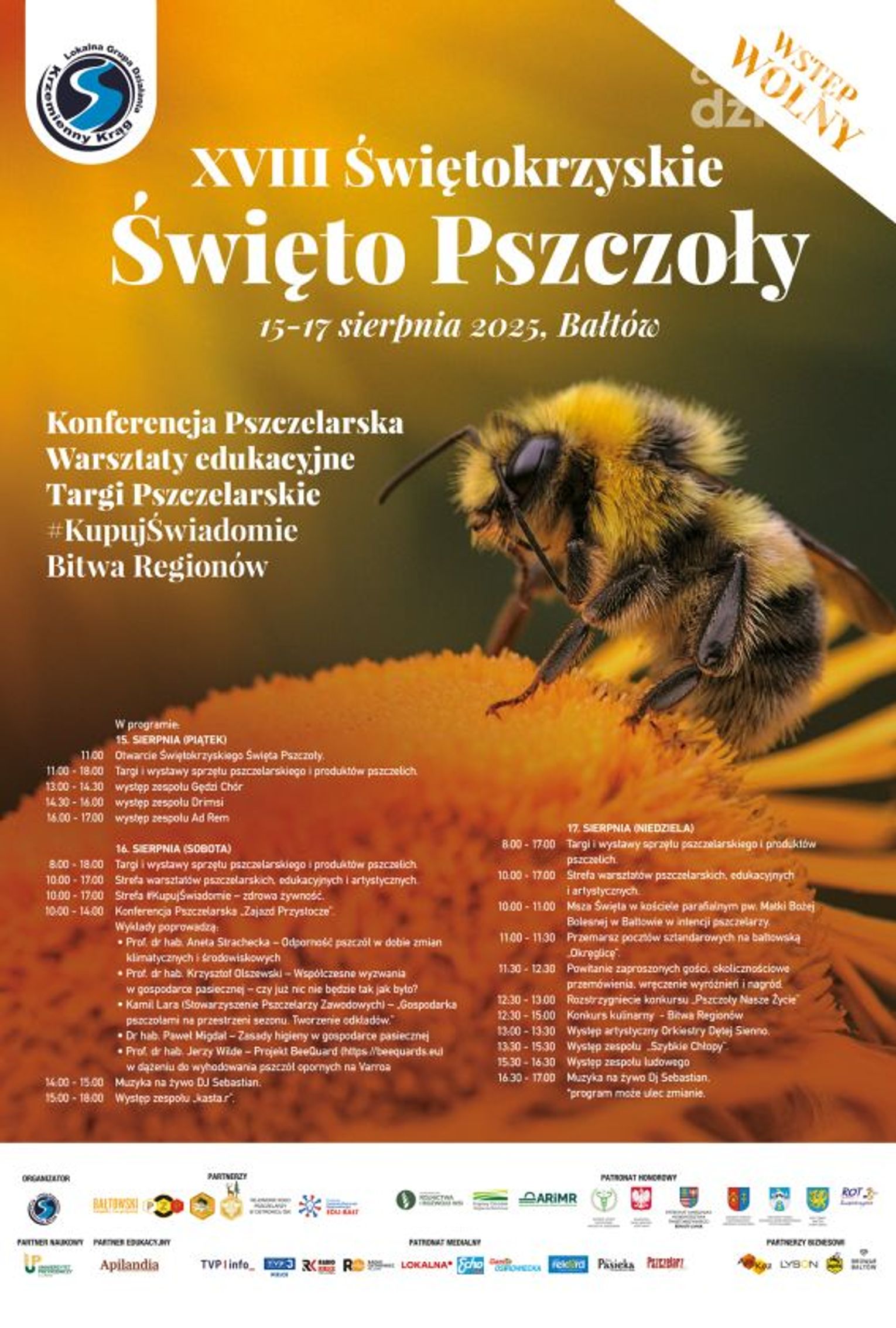 - To jest święto dla branży pszczelarskiej i niedziela jest takim dniem szczególnie ważnym, ponieważ jest i msza za pszczelarzy, jest przemarsz, są korowody, jest orkiestra dęta, są wyróżnienia, nagrody, odznaczenia, no i oczywiście dobra muzyka, nawiązująca trochę do folku. To co jest sednem też tego przedsięwzięcia to trzy dni, piątek, sobota i niedziela, ta strefa wystawiennicza- mówił Jarosław Kuba z Lokalnej Grupy Działania Krzemienny Krąg, organizatora bałtowskiego święta pszczelarzy.