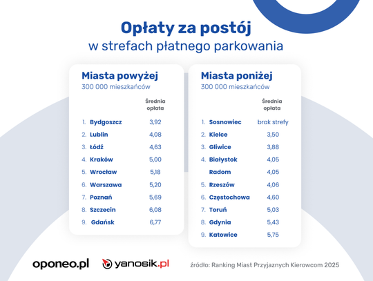 Na tle konkurencji Kielce wyróżniły się przede wszystkim niskimi opłatami za parkowanie. Strefa płatnego postoju funkcjonuje tu wyłącznie od poniedziałku do piątku, a średni koszt godziny postoju to tylko 3,50 zł – jeden z najniższych wyników w Polsce.