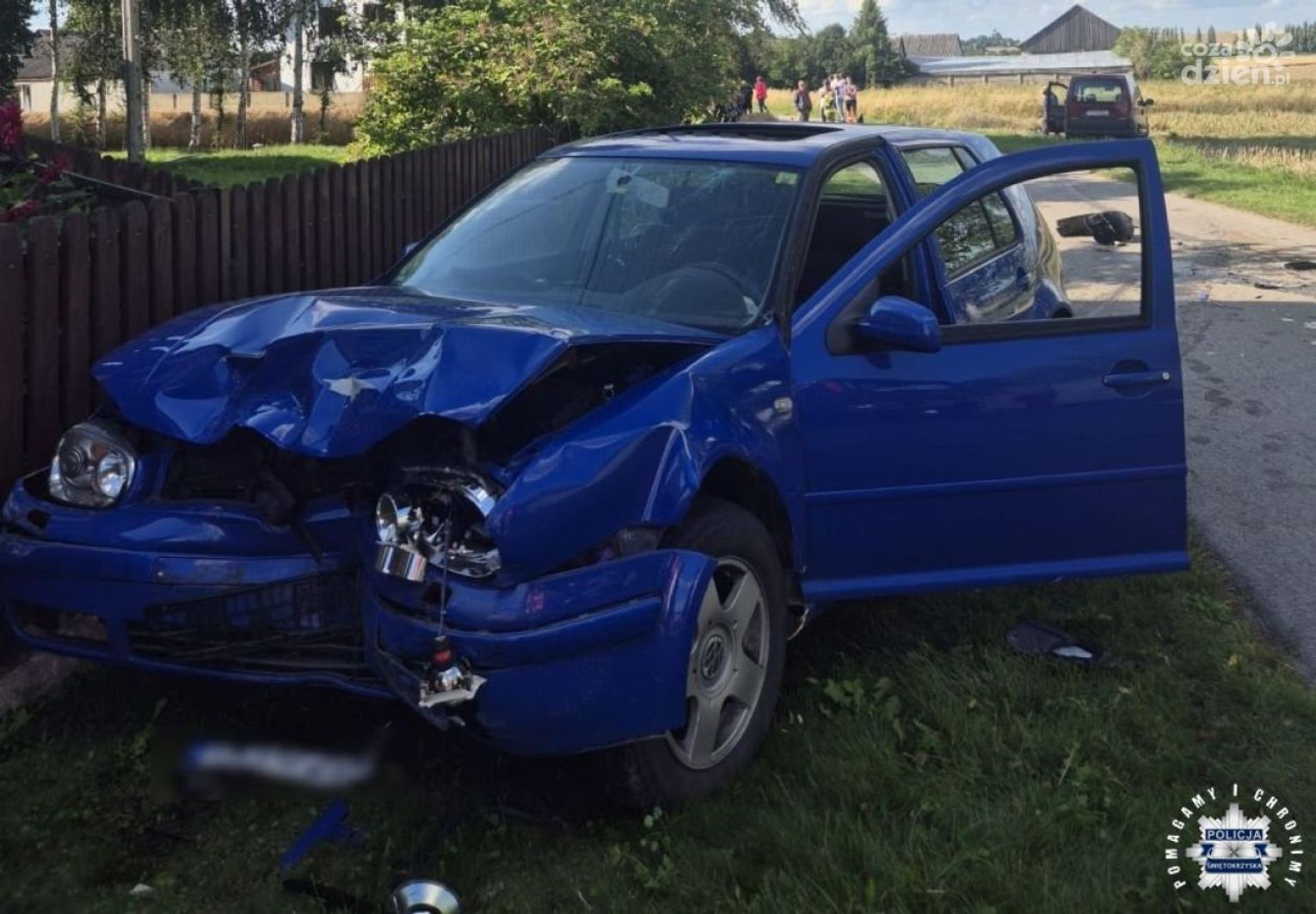 Z ustaleń policji wynika, że kierowany przez niego volkswagen zjechał na przeciwległy pas i zderzył się z nadjeżdżającym z naprzeciwka renault, którym jechał 34-latek. Mężczyzna trafił do szpitala, na szczęście jego obrażenia nie wymagają długiej hospitalizacji.
