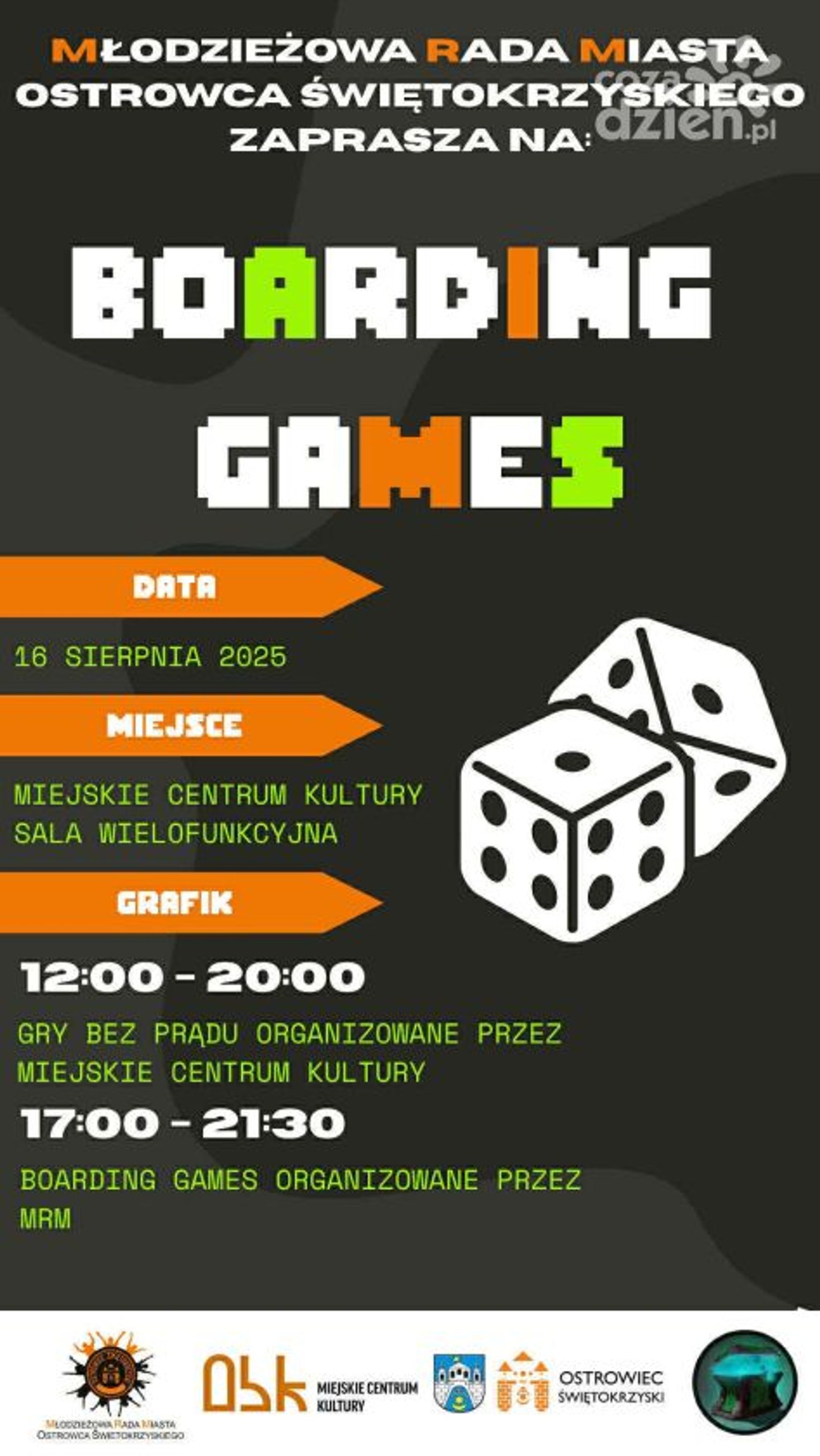Kolejne wydarzenia w ramach Wieczorków Młodzieżowych organizuje Młodzieżowa Rada Ostrowca wraz z Miejskim Centrum Kultury. 16 sierpnia, czyli w sobotę o godz. 12 w sali wielofunkcyjnej rozpoczną się gry bez prądu. To dobry sposób na spędzenie letniego popołudnia z grami planszowymi, karcianymi i analogowymi.