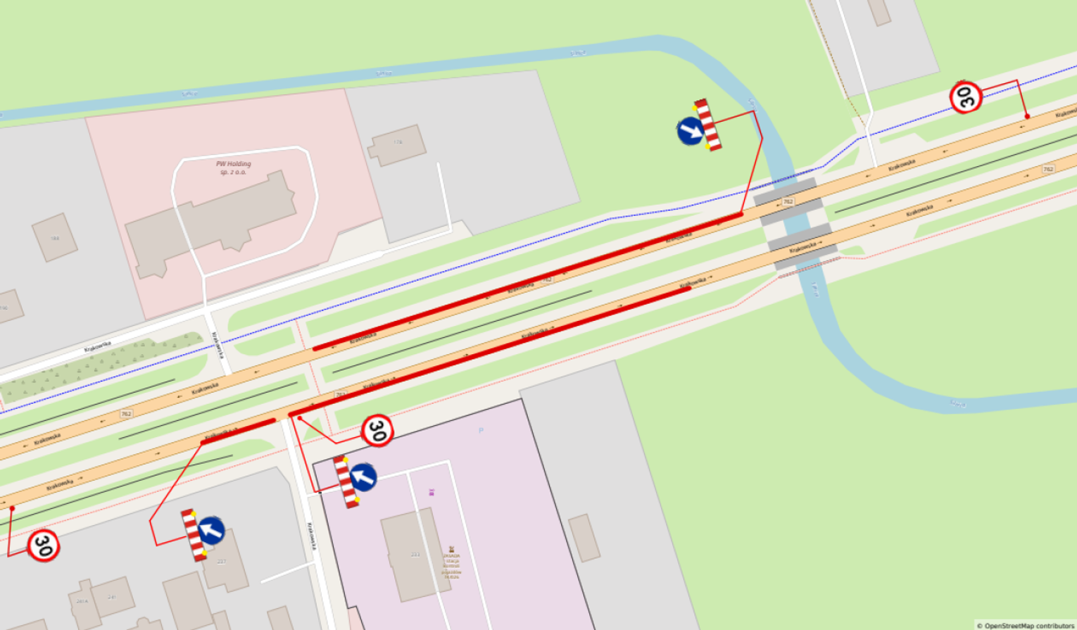 W związku z inwestycją, z ruchu wyłączone zostaną dwa odcinki prawego pasa – jeden o długości ok. 150 metrów (od numeru 237 w stronę centrum), drugi – ok. 130 metrów (od mostu na rzece Silnica do przejścia dla pieszych przy numerze 186). Na wspomnianych fragmentach obowiązywać będzie ograniczenie prędkości do 30 km/h.