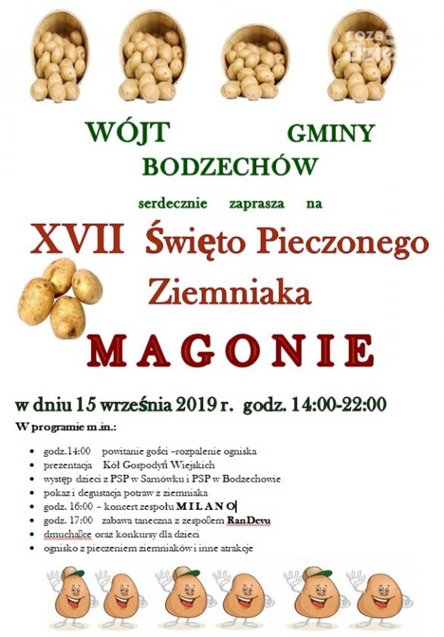 W dniu 15 września 2019 roku w godzinach od 14.00 do 22.00 odbędzie się XVII Święto Pieczonego Ziemniaka