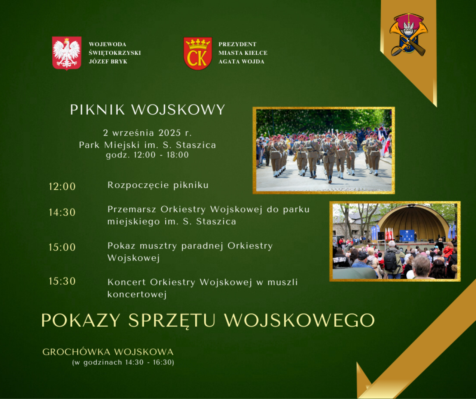 Dwa dni później, 4 września o godz. 18:00 w Kieleckim Centrum Kultury wystąpi Reprezentacyjny Zespół Artystyczny Wojska Polskiego. W repertuarze m.in. „Dumka na dwa serca”, „Marsz pierwszej brygady”, „Polskie drogi” oraz klasyka Cole Portera. Bezpłatne zaproszenia można odebrać w KCK od 1 do 3 września.