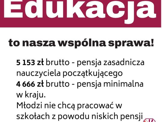 - Wydaje się znaczne, bo trzydzieści procent podwyżki pensji nauczycieli, ale tak naprawdę dużo. Jednak myślę, że dwadzieścia procent pożarła już inflacja a nauczyciel początkujący nadal zarabia niewiele ponad najniższą krajową. Gdyby nie było tej trzydziestoprocentowej podwyżki, nauczyciel początkujący musiałby mieć wyrównywane przez gminy wynagrodzenie do najniższej krajowej. Dzieje się już tak, że panie sprzątające zarabiają więcej niż nauczyciel początkujący.