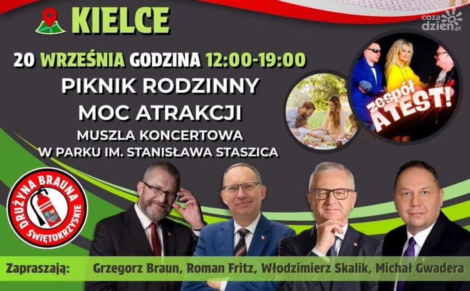 Kulminacją wydarzenia będzie wystąpienie Grzegorza Brauna, posła do Parlamentu Europejskiego i prezesa Konfederacji Korony Polskiej. Jego obecność zaplanowano około godziny 17:15. Polityk ma także spotkać się z uczestnikami i – jak zapowiedziano – podpisywać gaśnice.