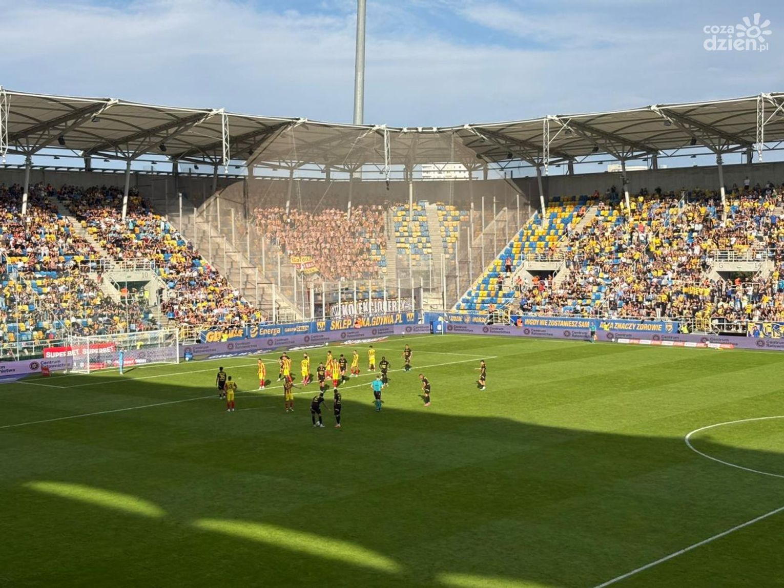 Arkowcy, natchnieni dopingiem z trybun, próbowali zbliżać się pod pole karne Korony, jednak kolejne okazje kończyły się niepowodzeniem. Kielczanie cofnięci na własną połowę mieli spore problemy, by wydostać się spod wysokiego pressingu. Na przedmeczowej konferencji Zieliński wspominał o znakomitej akustyce stadionu w Gdyni i miał rację — doping niósł Arkę, a Koronę raczej przygniatał, bo podopieczni trenera nie byli w stanie stworzyć klarownej sytuacji pod bramką Damiana Węglarza.