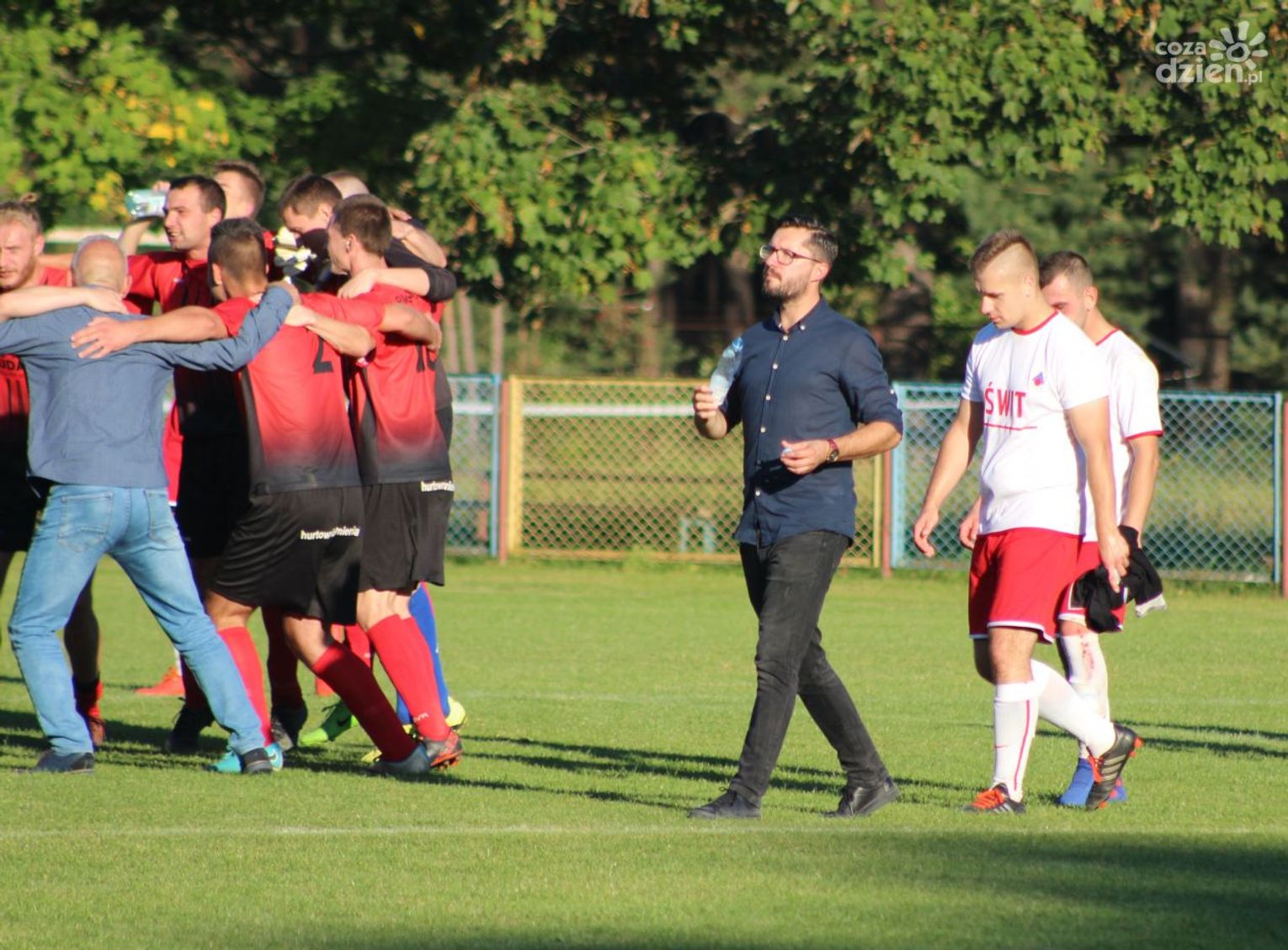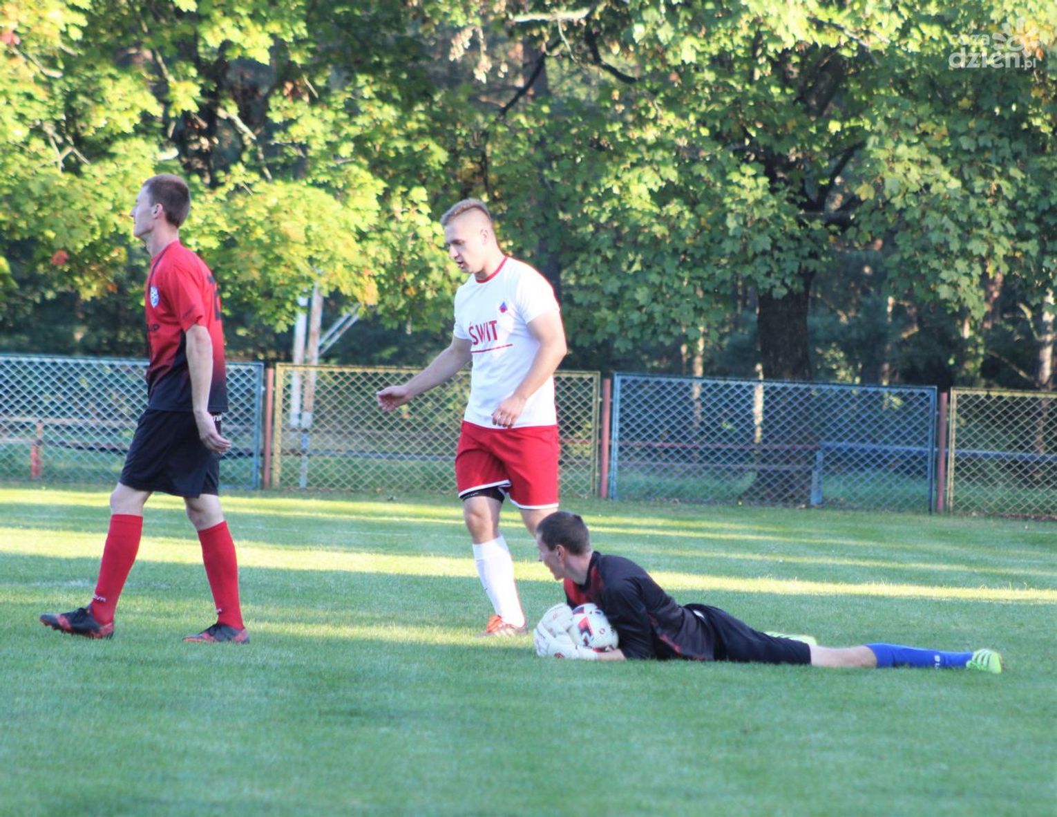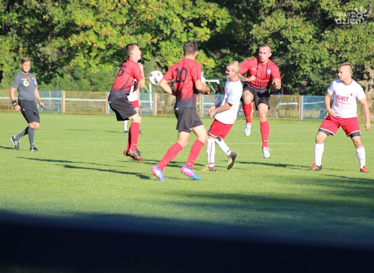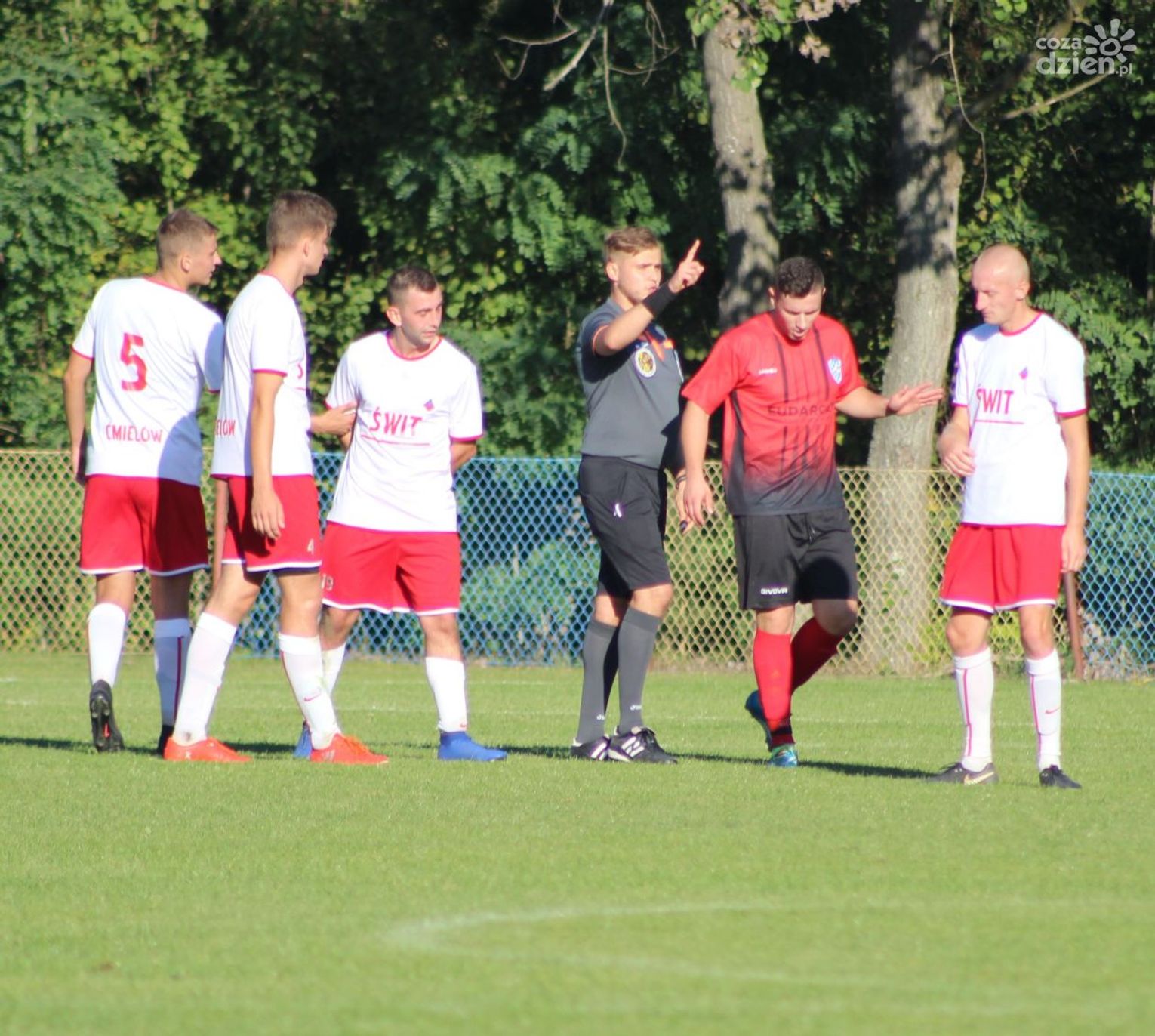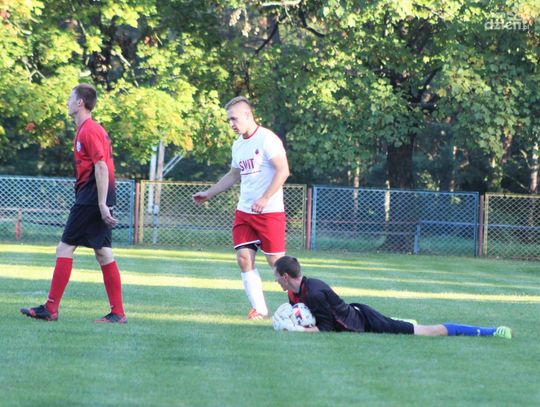 Z kolei ćmielowski Świt pozostaje jedynym zespołem w lidze bez zwycięstwa. Tym razem ćmielowianie ulegli na własnym stadionie Zorzy-Tempo Pacanów 0:4. W pierwszej części spotkania ćmielowianie prowadzili wyrównaną grę, bramki padały jednak tylko dla gości, którzy po dwóch strzałach Tomasza Kopackiego prowadzili do przerwy 0:2. W drugiej części na boisku istniała już tylko drużyna przyjezdnych i kolejne dwie bramki dołożył inny z braci Kopackich - Konrad. Po siedmiu kolejkach Świt zamyka ligową tabelę z zaledwie jednym punktem na koncie.