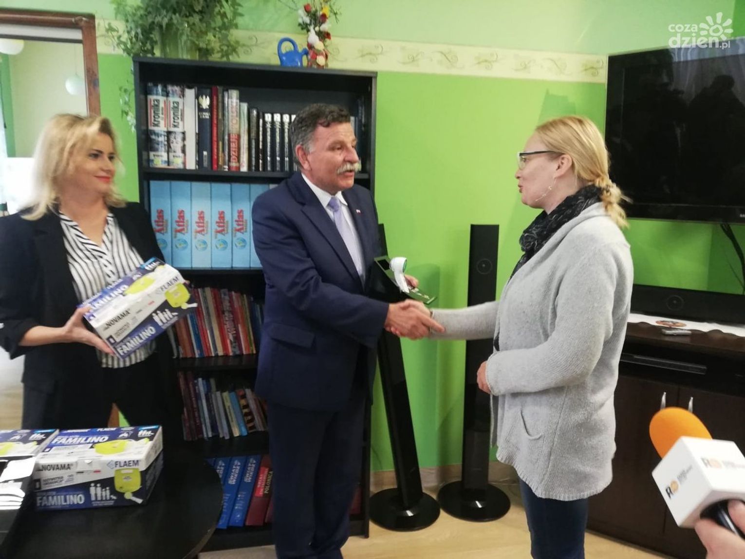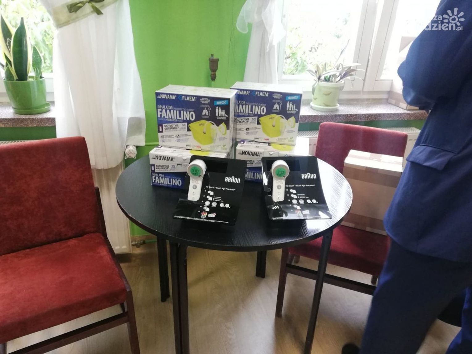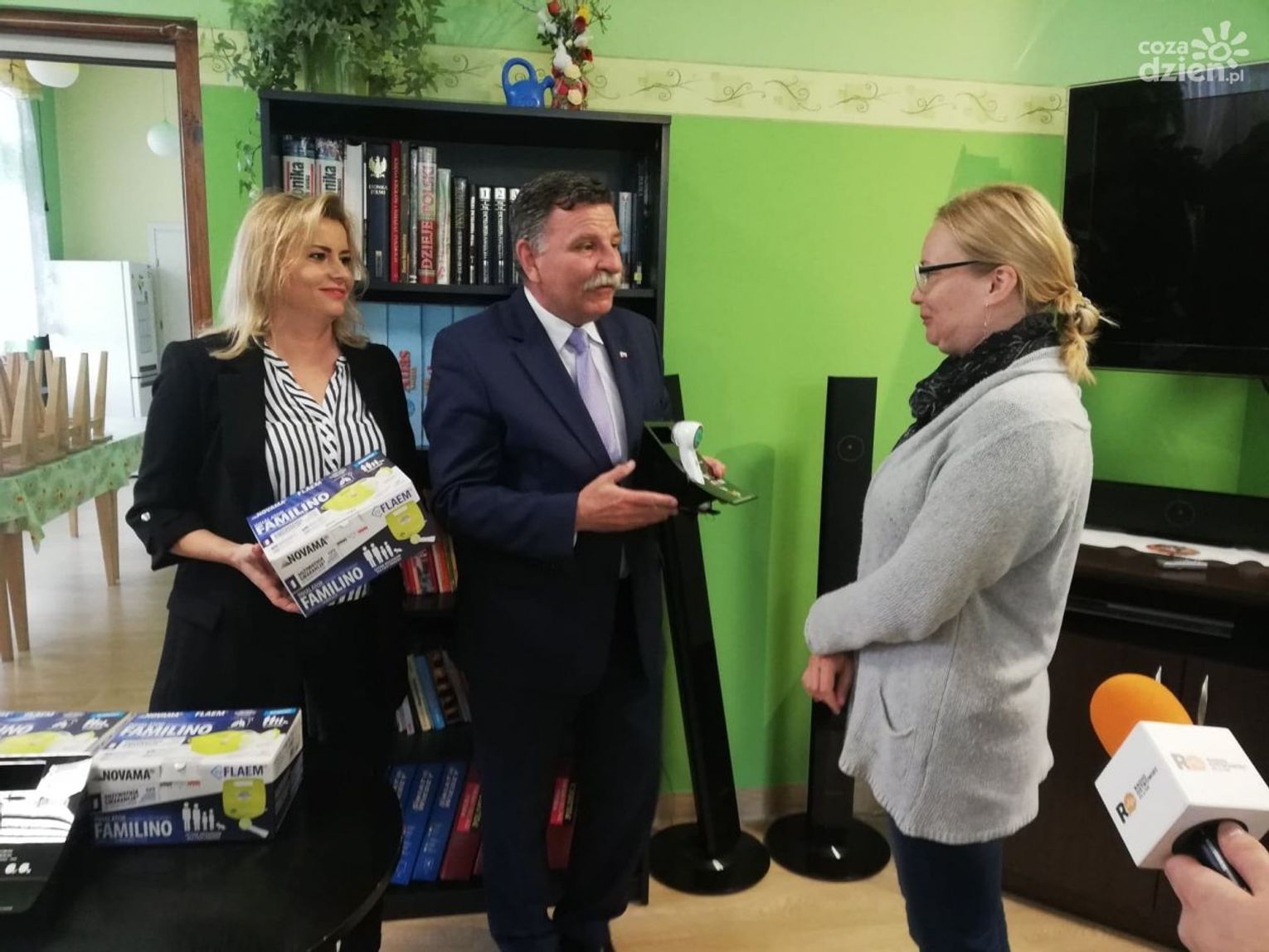 Termometry i inhalatory oficjalnie odebrały siostry z "Naszego Domu" i przedstawicielka placówki w Małachowie.