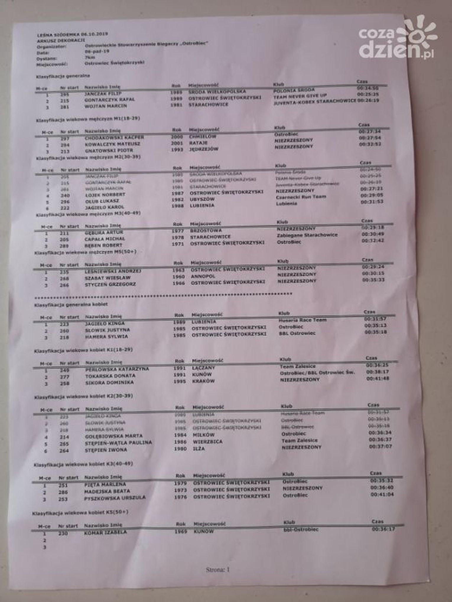 Organizatorzy wydarzenia - Ostrowieckie Stowarzyszenie Biegaczy OstroBiec - nagrodzili medalami i statuetkami z leśnym akcentem najlepszych zawodników. Były też nagrody dla najliczniejszej i dla najszybszej drużyny.