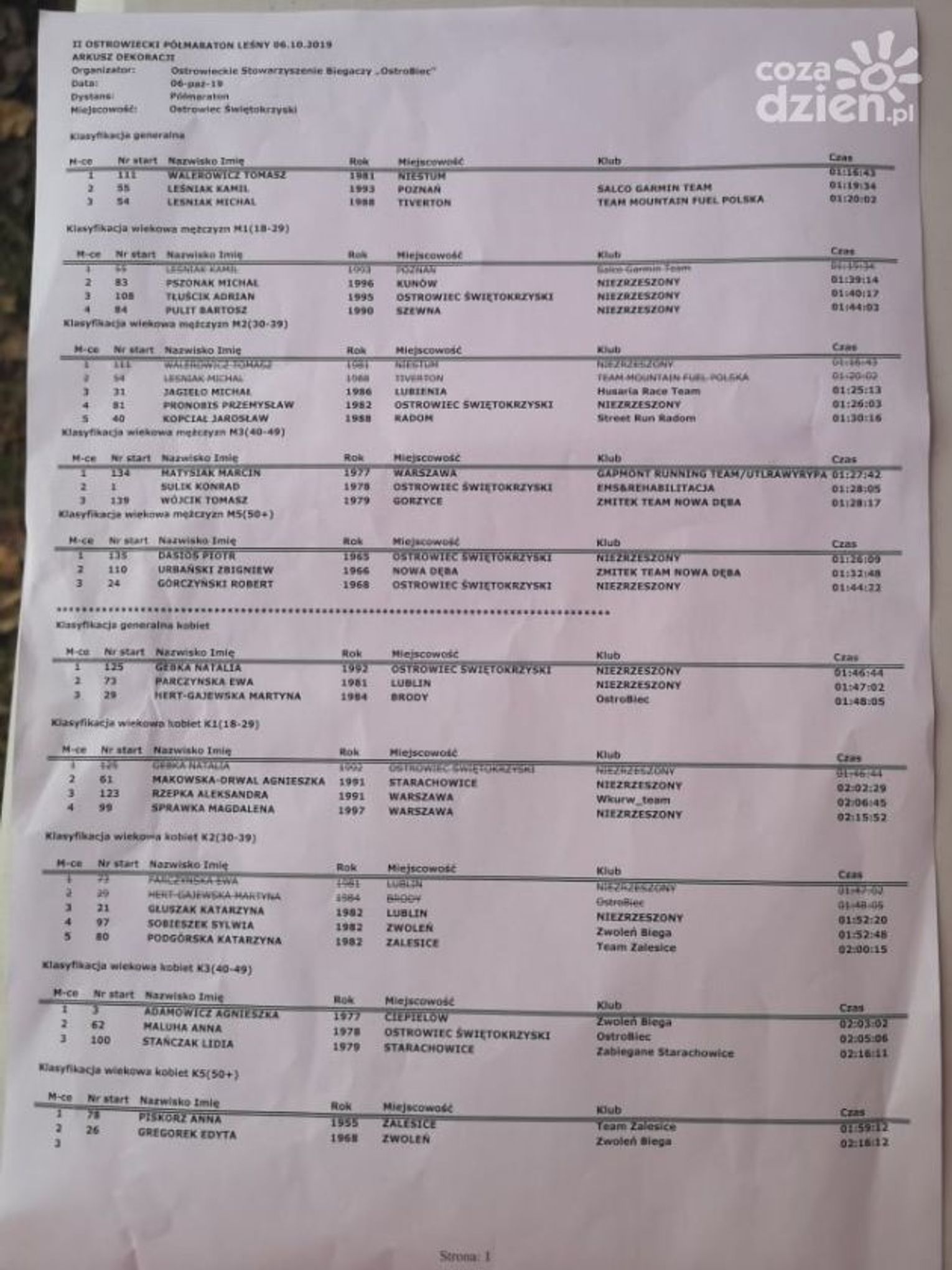 Drugi na podium był Kamil Leśniak. Mistrz Polski w biegach na ultra dystansie, zawodnik Salco Garmin Team finiszował z czasem 1:19:33. Trzeci w klasyfikacji open był Michał Leśniak z Mountain Fuel Polska, który przybiegł niespełna pół minuty po swoim bracie, trasę półmaratonu pokonując w 1:20:01.