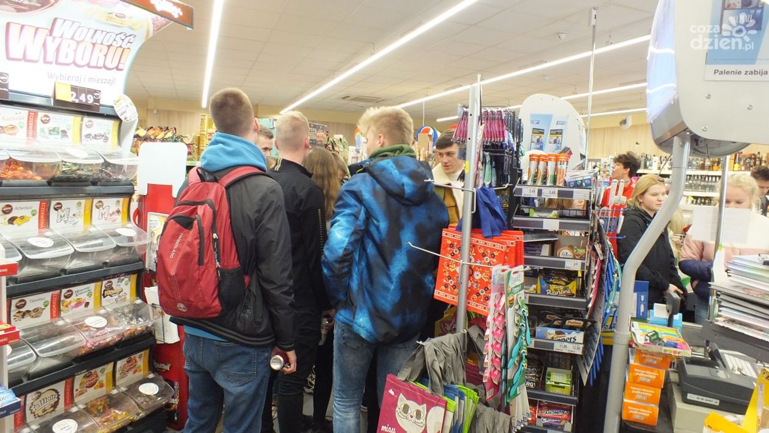 Okazuje się, że to nie jedyna odpowiedź ze strony uczniów. Postanowili przeprowadzić akcję protestacyjną i na zakupy do supermarketu przyszli całą szkołą, wszyscy podczas jednej przerwy.