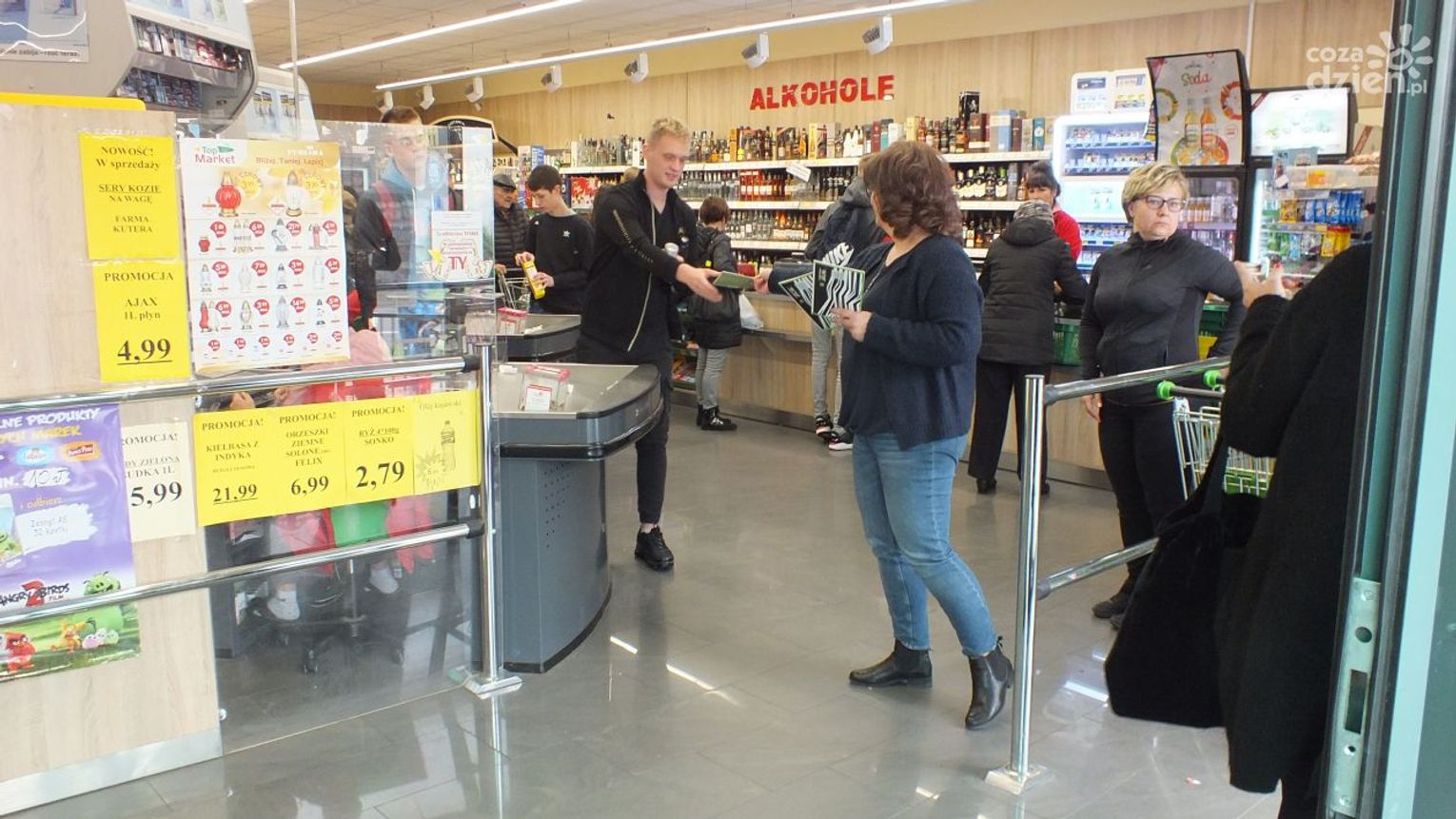 Idąc przykładem młodzieży z Zielonej Góry, ostrowiecka młodzież wykorzystała pomysł i taką akcję przeprowadzili w jednym z marketów na terenie Ostrowca. 150 osób z popularnego Chreptowicza na długiej przerwie, jednocześnie weszło do sklepu przy ul. Iłżeckiej kupując drobne rzeczy. Właściciel sklepu dla tak licznej grupy przygotował niespodzianki w postaci zeszytów ołówków i napoi. Pracownicy wraz z właścicielem przyjęli wezwanie na wesoło.