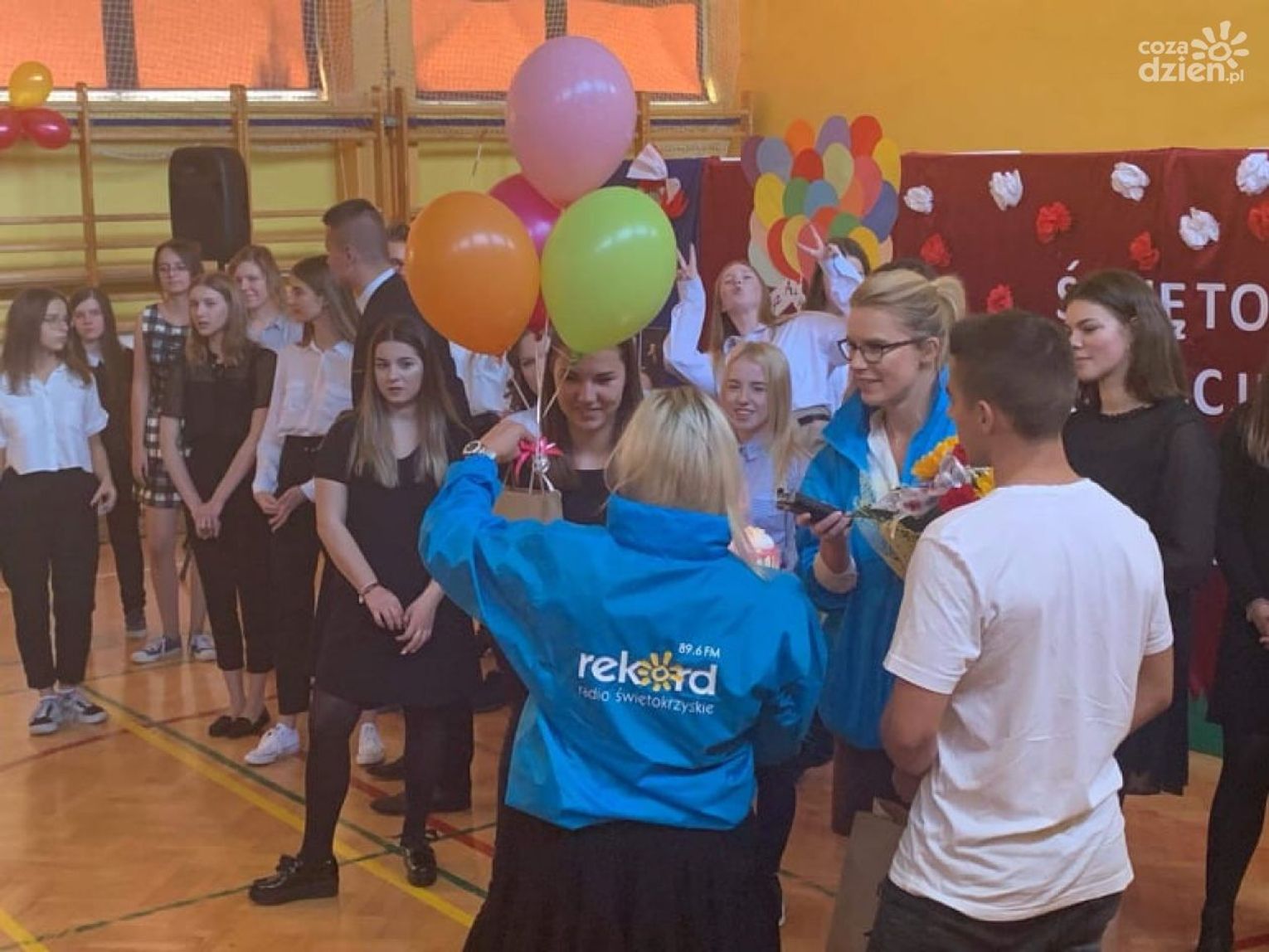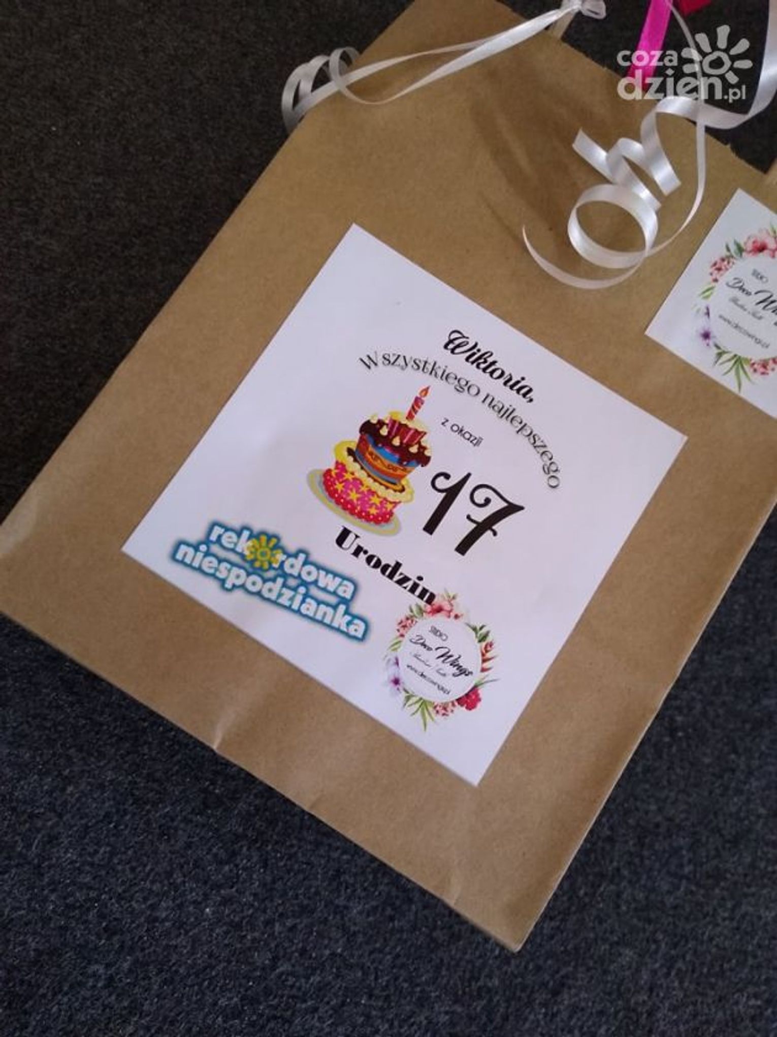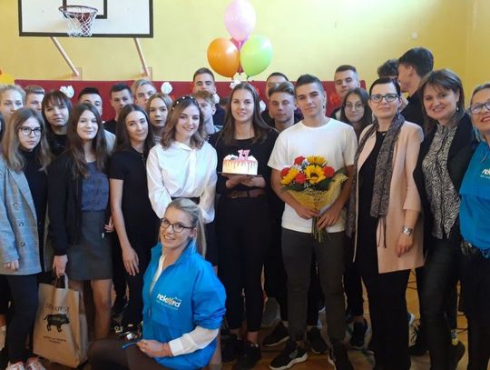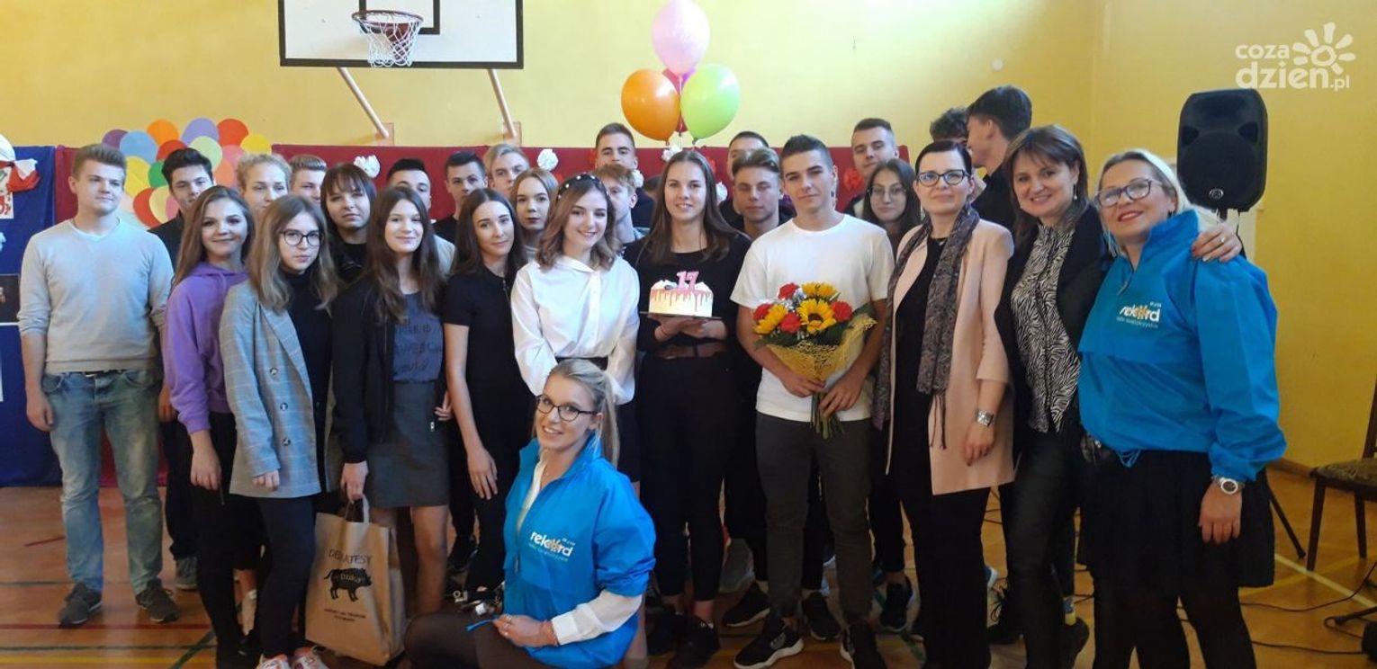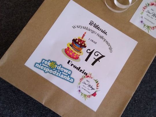 Kiedyś powiedziała, że jej nigdy nie dałoby się w nic "wkręcić". Ale jak mówią... nigdy nie mów nigdy! Świętująca siedemnaste urodziny Wiktoria dała się zaskoczyć Rekordowej Niespodziance. Z prezentami od niezawodnych sponsorów: Kwiaciarni MAJA, Delikatesów u Dzika, Piekarni i Cukierni "Skalski" oraz Studia DECO WINGS pojawiliśmy się na apelu z okazji Dnia Nauczyciela w LO nr II im. J. Chreptowicza. Było gromkie "Sto lat" odśpiewane przez całą społeczność szkoły i życzenia od samej dyrektor. O tak wyjątkowe urodziny dla swojej dziewczyny zadbał Kewin.